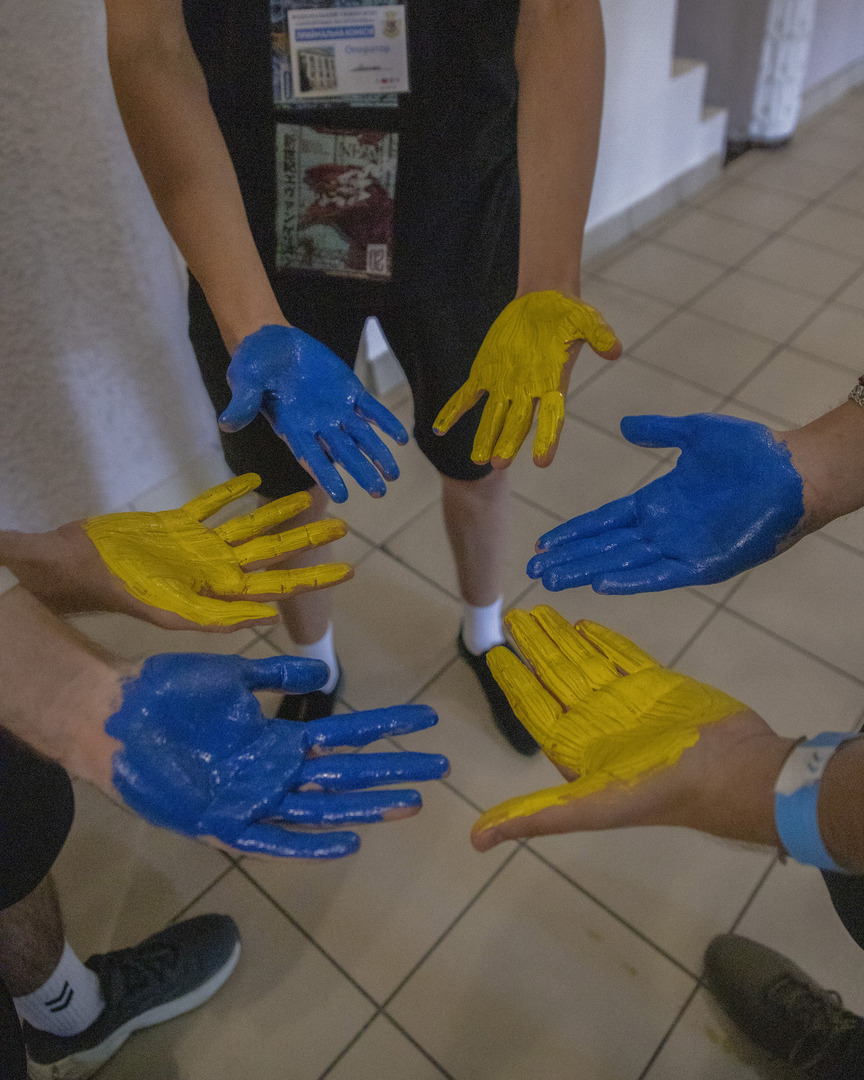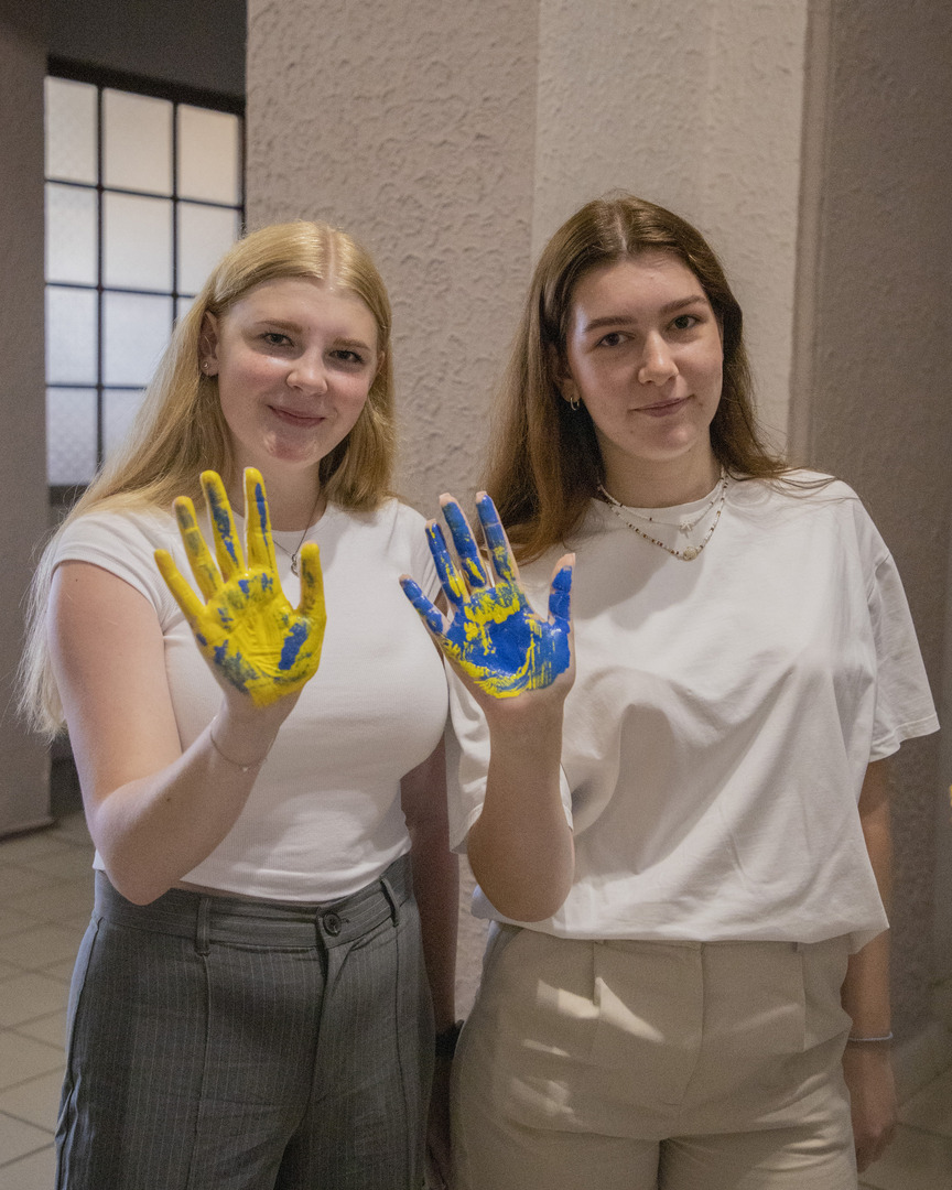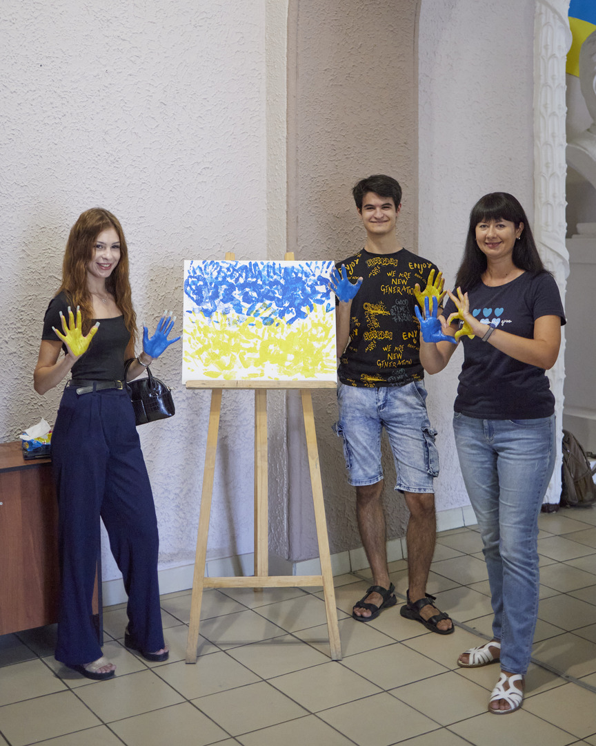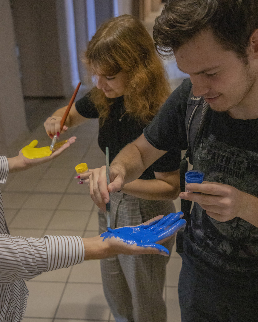 Студенти, викладачі та співробітники університету власноруч створили яскраву інсталяцію з долоньок у кольорах українського прапора. Це полотно стало уособленням єдності, спільної відповідальності та прагнення кожного до збереження миру й незалежності нашої держави.