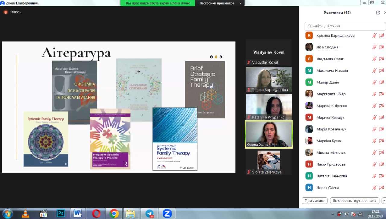 Кафедра психології факультету соціальних наук Національного університету «Запорізька політехніка» 8 грудня провела гостьову онлайн-лекцію на тему: «Системний підхід в індивідуальному та сімейному консультуванні й психотерапії».