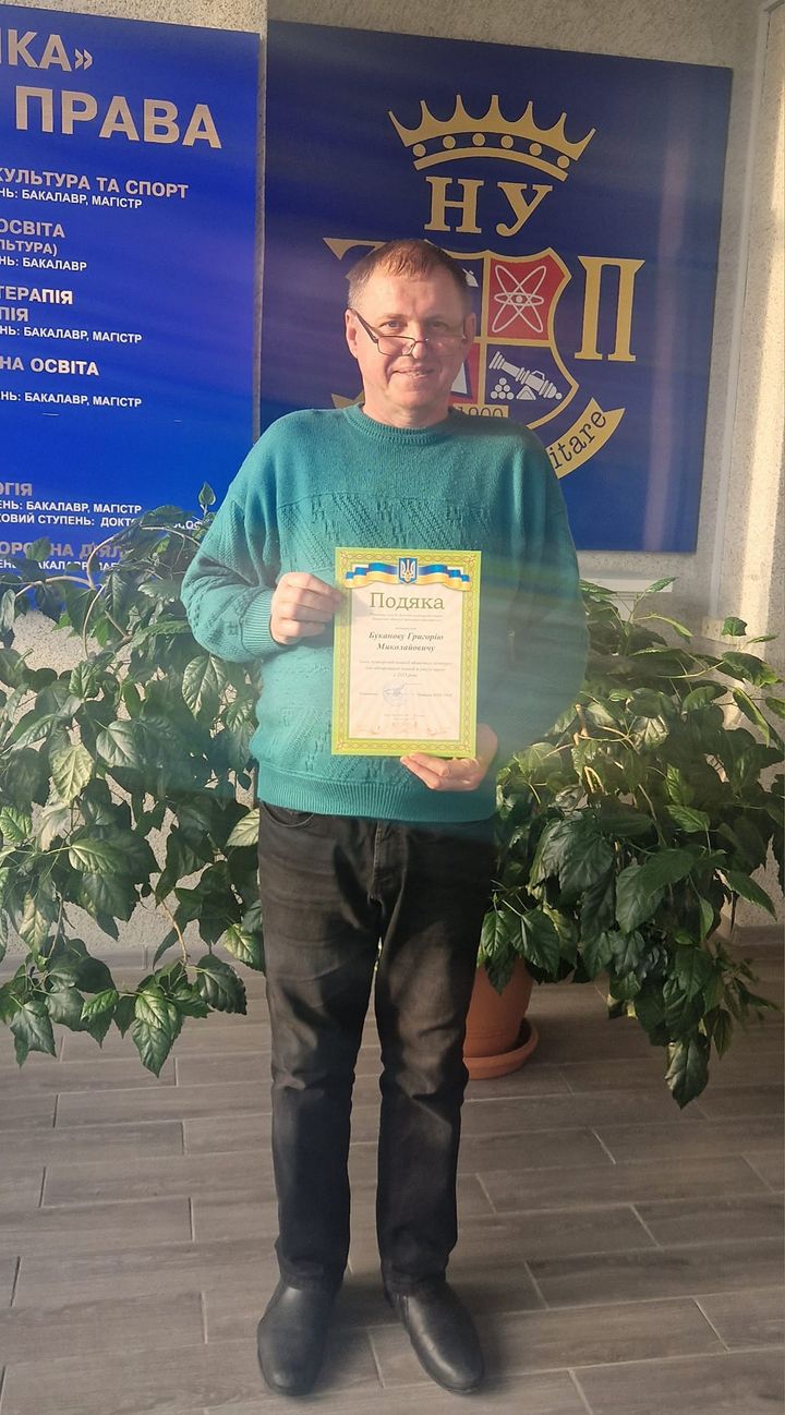 За плідну роботу на обласному конкурсі для обдарованої молоді в галузі науки у 2023 році в якості члена конкурсної комісії - нашому шановному колезі, доктору наук, професору, професору кафедри конституційного, адміністративного та трудового права Буканову Григорію Миколайовичу було оголошено Подяку від управління молоді, фізичної культури та спорту Запорізької обласної державної адміністрації.