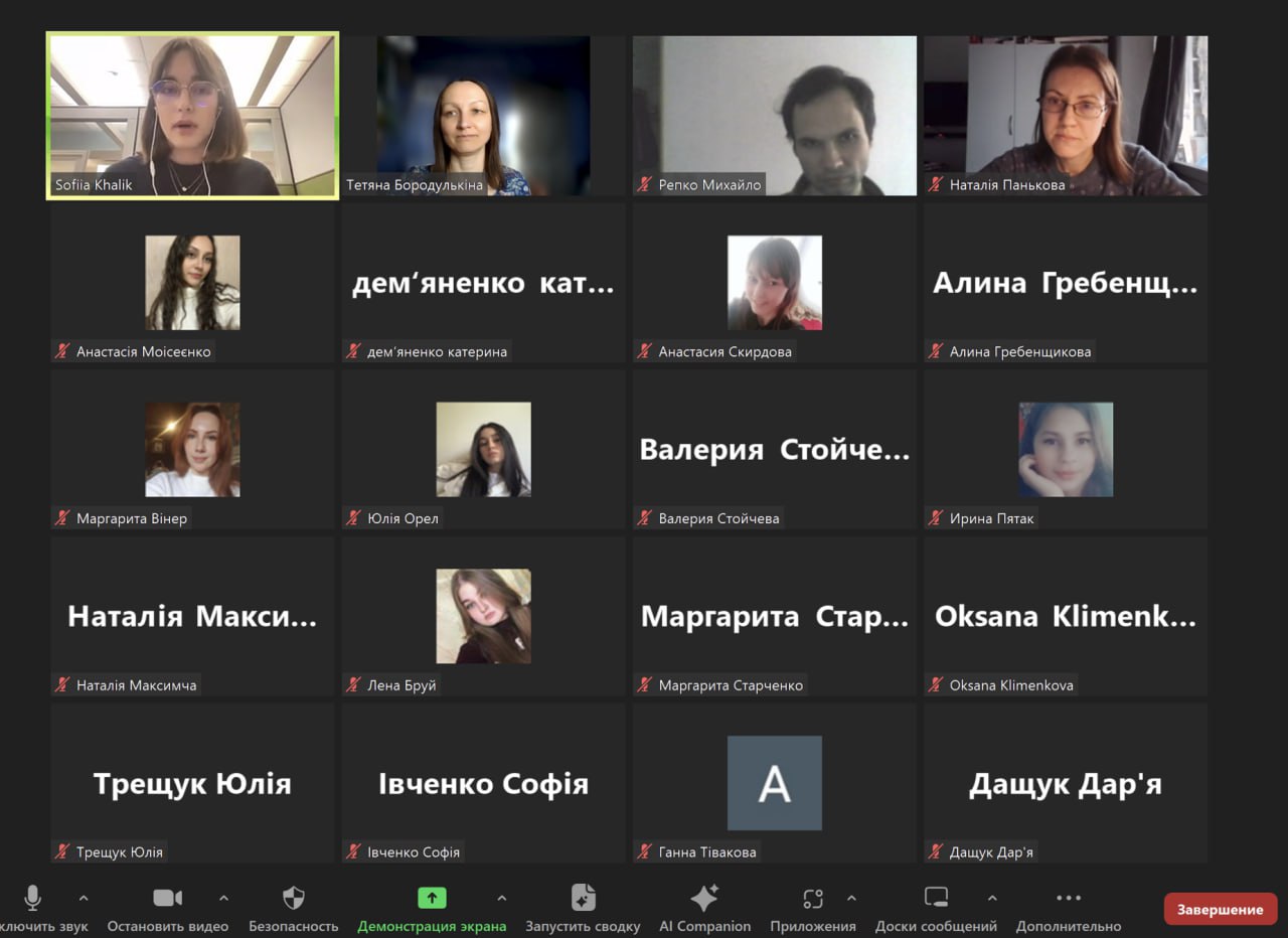До зустрічі долучилися понад 30 гостей — здобувачі спеціальності 053 «Психологія» різних курсів і форм навчання та співробітники кафедри психології Національного університету «Запорізька політехніка», здобувачі спеціальності 053 «Психологія» разом з доценткою кафедри загальної та вікової психології Криворізького державного педагогічного університету Оленою Халік.