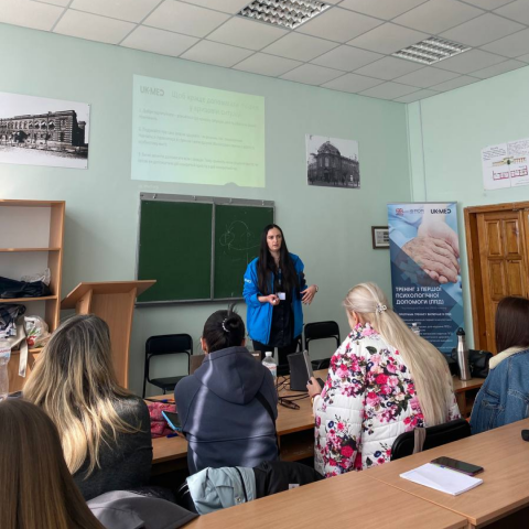 Тренінг з надання першої психологічної допомоги був розроблений фахівцями UK-Med Ukraine для поширення навичок надання першої психологічної допомоги в кризових ситуаціях, містив інтерактивну теоретичну частину та практичні вправи, які проводилися у вигляді обговорення кризових подій, рольових ігор з надання першої психологічної допомоги, самодопомоги.