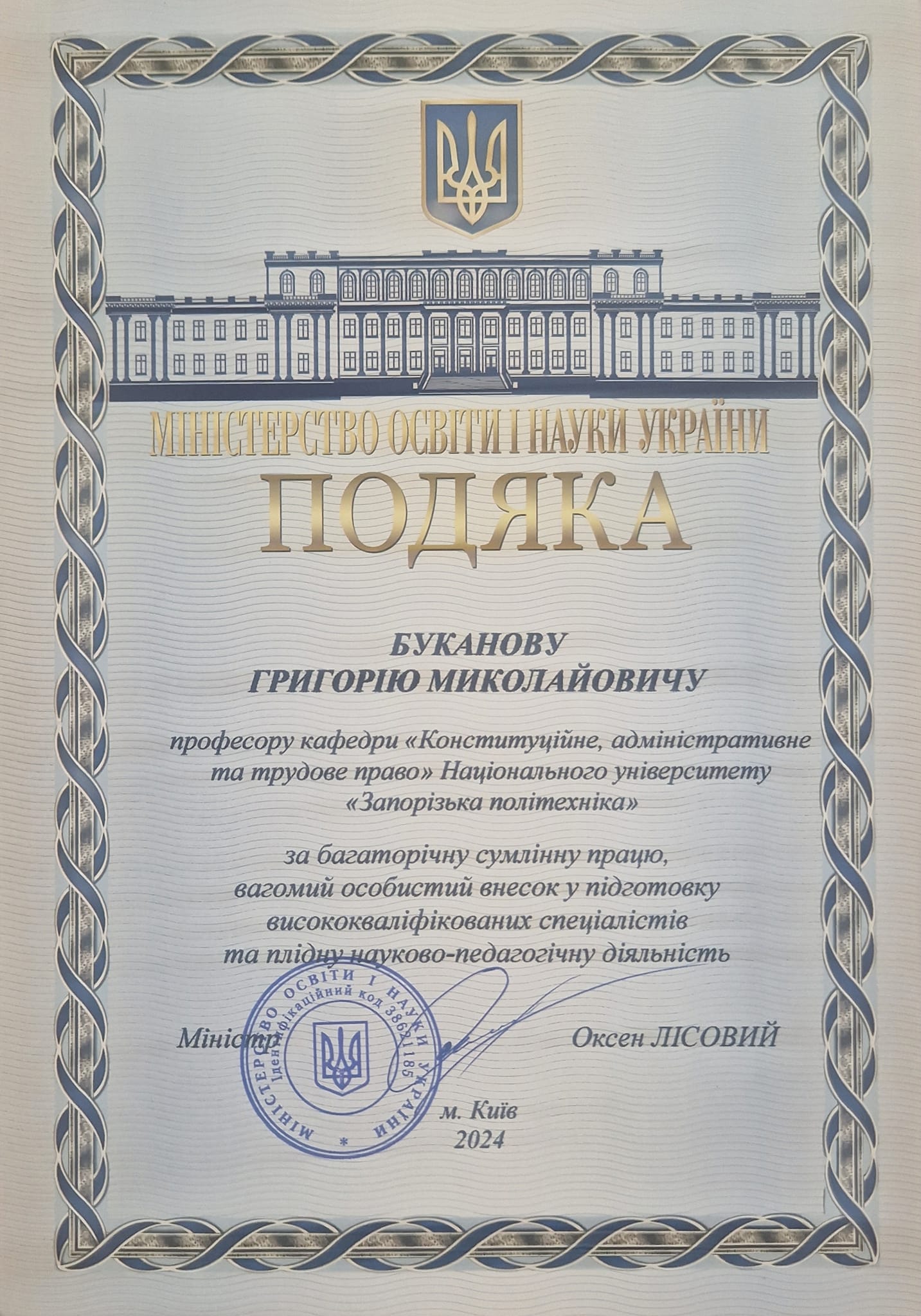 Колектив кафедри вітає нашого шановного професора, доктора наук Григорія Миколайовича Буканова з отриманням Подяки від Міністерства освіти і науки України за багаторічну сумлінну працю, вагомий особистий внесок у підготовку висококваліфікованих спеціалістів та плідну науково- педагогічну діяльність!!!