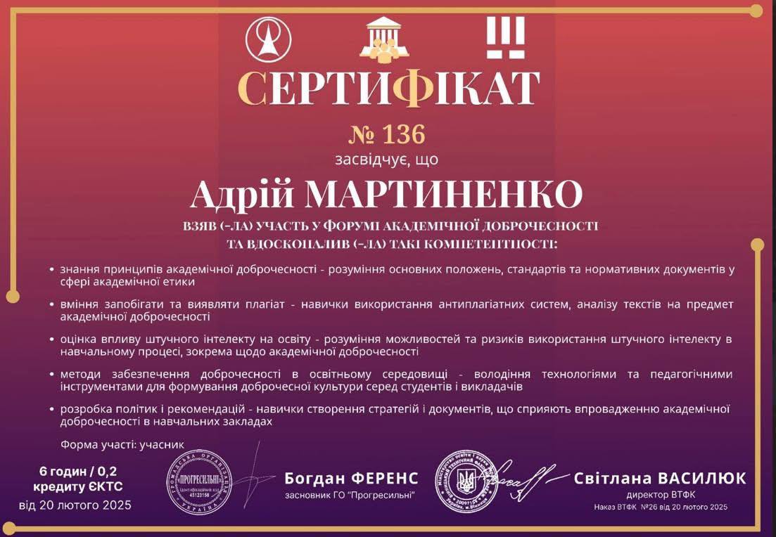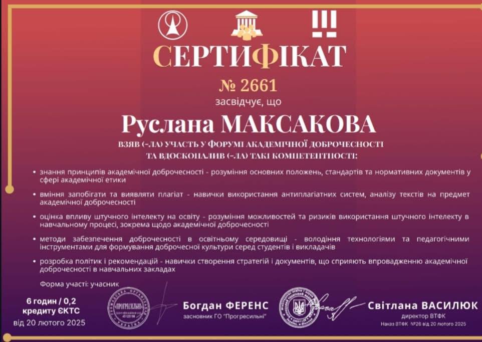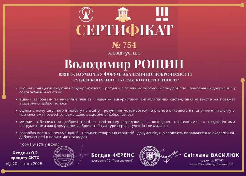 Особлива увага на Форумі була приділена питанням етики і відповідальності при використанні штучного інтелекту в освітньому процесі, зокрема щодо процесу запобігання плагіату та маніпуляцій в академічних текстах. Колектив кафедри висловлює слова щирої вдячності спікерам Форму за змістовні й актуальні доповіді щодо поглибленого розуміння сучасних викликів академічної доброчесності, етичних орієнтирів використання штучного інтелекту в освіті та рекомендовані спікерами ефективні підходи до запобігання плагіату та академічних маніпуляцій.