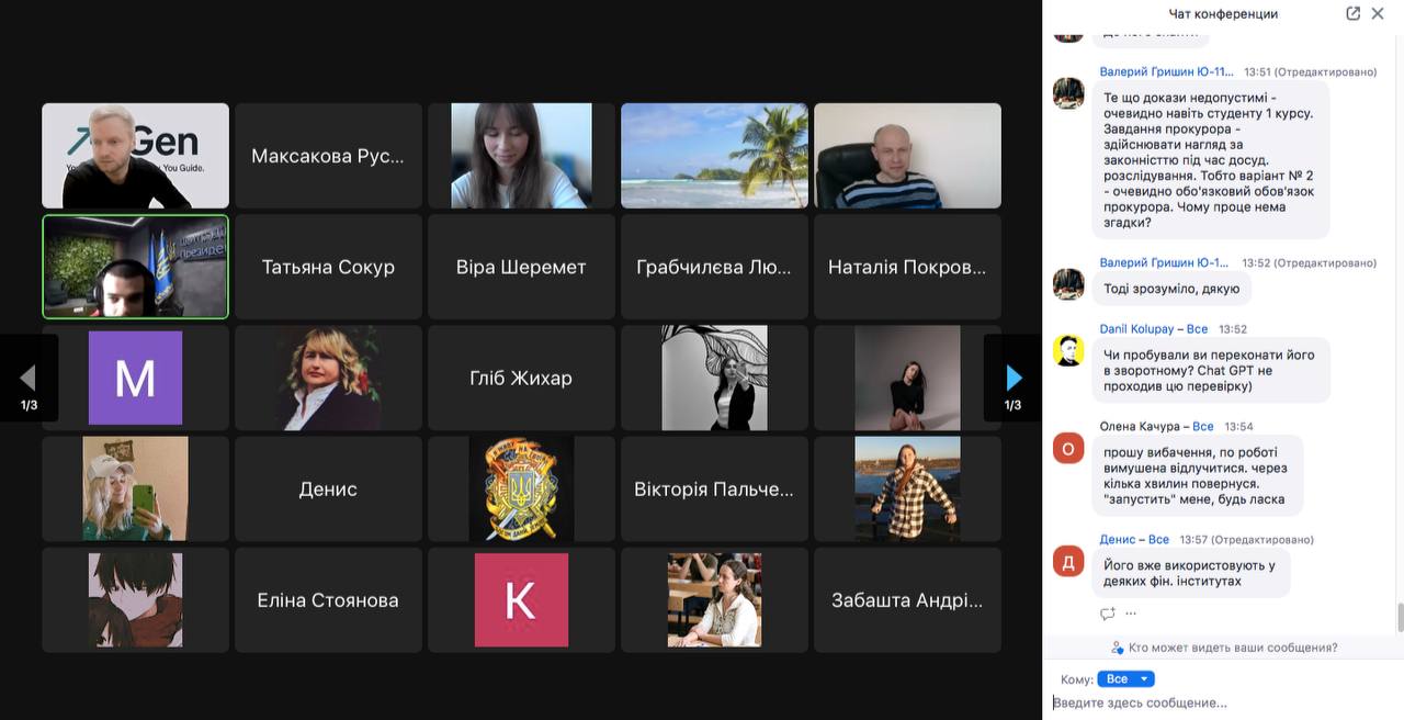 У квітні 2025 року для студентів та викладачів НУ "Запорізька політехніка" було проведено онлайн-лекцію на тему "Юрист у цифрову епоху: освіта, мислення і штучний інтелект". Організатором заходу є прокурор, к.ю.н., доцент кафедри конституційного, адміністративного та трудового права Гаврилов Юрій Геннадійович. Лекція, яка присвячена ролі штучного інтелекту в освітній сфері викликала інтерес не тільки у безперечно залучених до процесу освіти, а й привернула увагу гостей нашого університету. Сам захід зібрав близько 70 учасників.