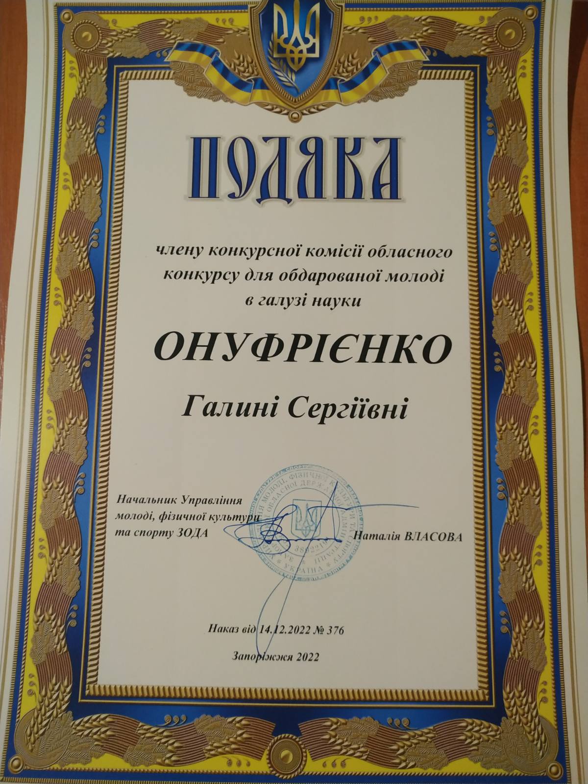Серед нагороджених переможців Запорізьку політехніку представляли, як і минулого року, студентка другого курсу ВІКТОРІЯ КОВТУН і її науковий керівник, доктор філософії у філологічних науках, доцент кафедри українознавства та загальної мовної підготовки ГАЛИНА ОНУФРІЄНКО.