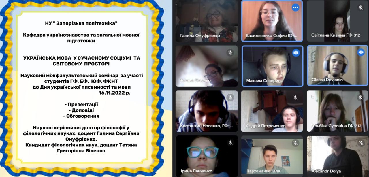 8 листопада 2023 року серед заходів до Дня української писемності та мови кафедра українознавства та загальної мовної підготовки організувала й провела інтелектуально-духовний міжфакультетський круглий стіл на тему: "Сучасні наративи в лінгвістичному дискурсі", у якому взяли участь близько ста студентів різних факультетів нашого університету. До обговорення мовознавчих проблем долучилися бакалаври першого курсу, які прагнуть поглиблено вивчати багатство українського слова. Засідання круглого столу стало майданчиком для виступів, презентацій студентів як гуманітарного, так і технічного напрямів.