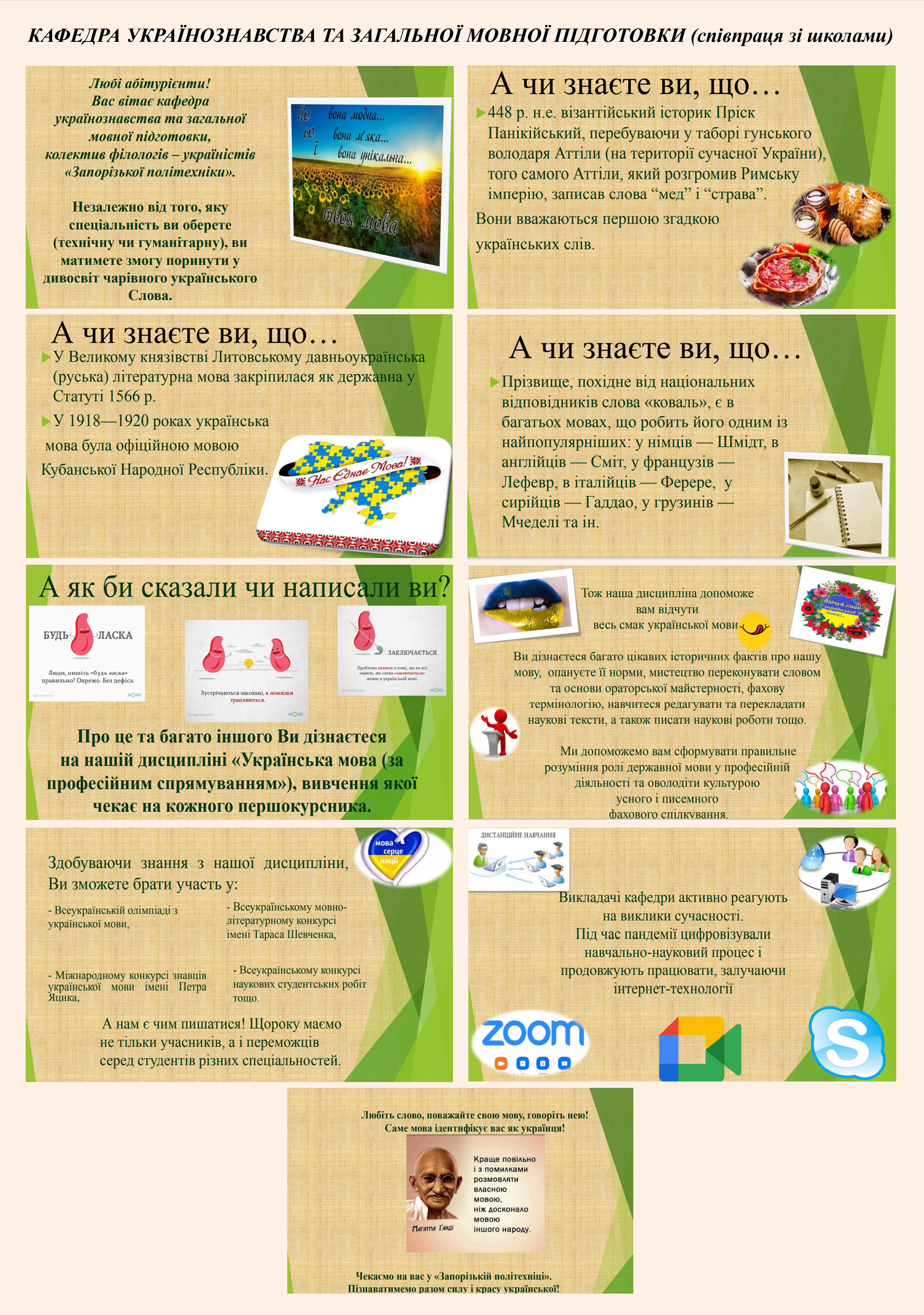 Архів новин кафедри українознавства та загальної мовної підготовки