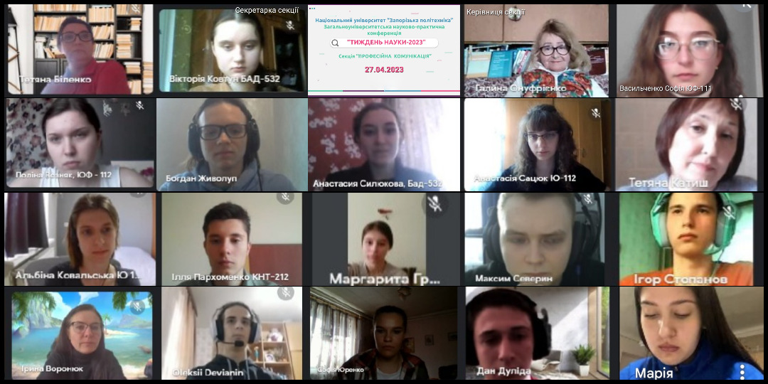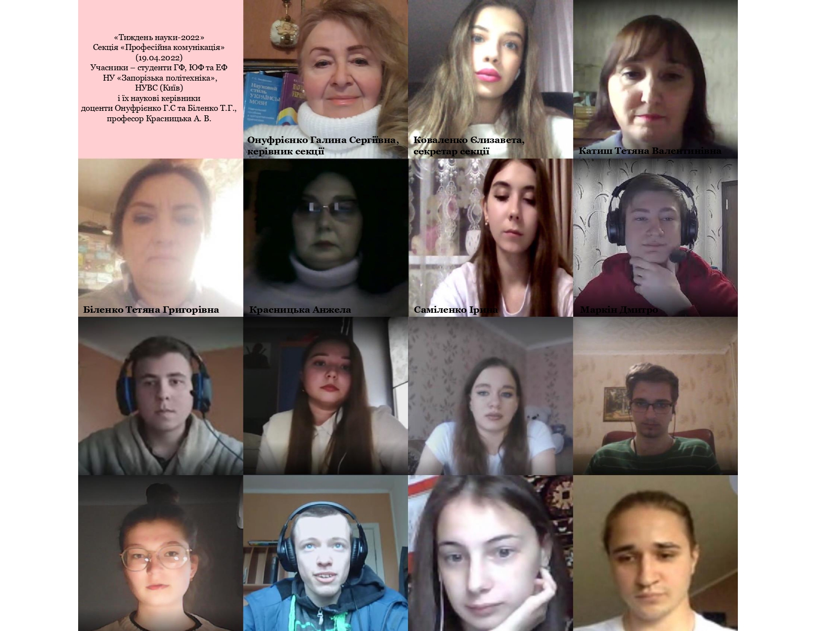 про заслухані й обговорені доповіді на секції "Професійна комунікація" та про свою участь у роботі секції, що відбулася 21.04.2021 р. в межах традиційного "Тижня науки" в НУ"Запорізька політехніка"