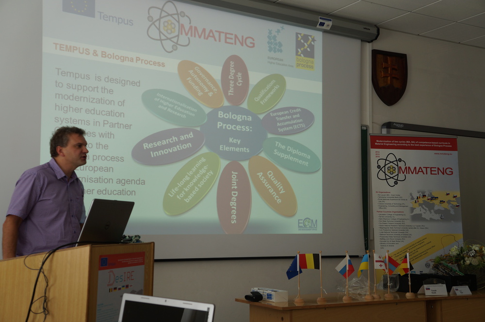 В рамках інтер-ТEMPUS коучінгу представник Університету Ку Левен (Бельгія) Пітер Арас розповів про хід виконання проекту MMATENG, в якому також приймають участь виші України, зокрема Приазовський державний університет.