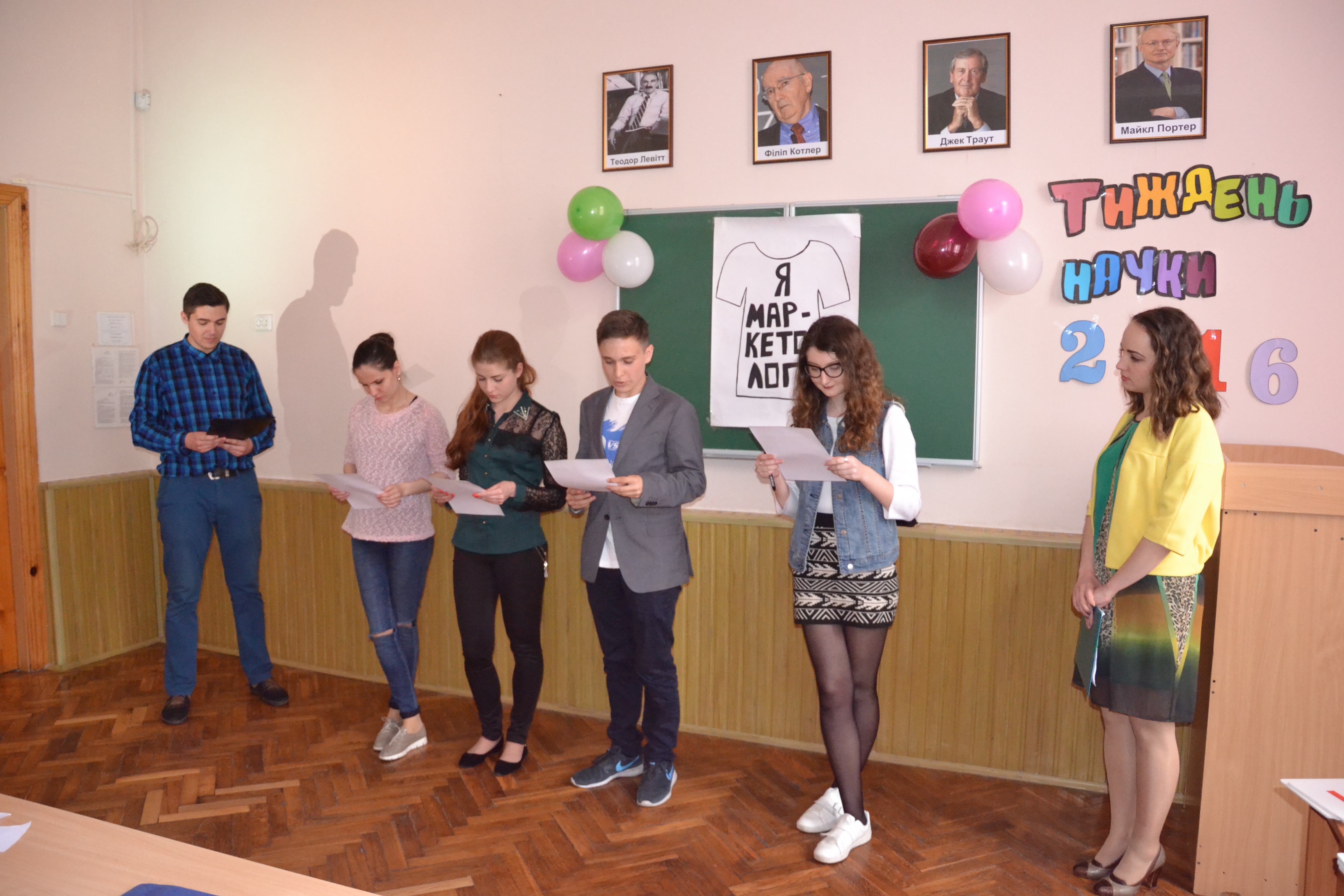 Цього року 19 квітня кафедра маркетингу вперше провела науково-практичну конференцію «Тиждень науки 2016» в новому форматі. Студенти і викладачі представили науку в ігровій формі, у вигляді конкурсних завдань, які оцінювало компетентне журі.