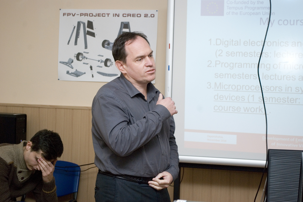 На координаційній нараді з командою проекту DESIRE від ЗНТУ Дірк Ван Мероде розповів про поточний стан, перспективи роботи та зауважив на проведенні пілотного навчання за новими розробленими курсами з вбудованих систем в поточному семестрі. Проект було подовжено на 4 місяці для завершення пілотного навчання в осінньому семестрі 2016/2017 р.н. в університетах-партнерах.