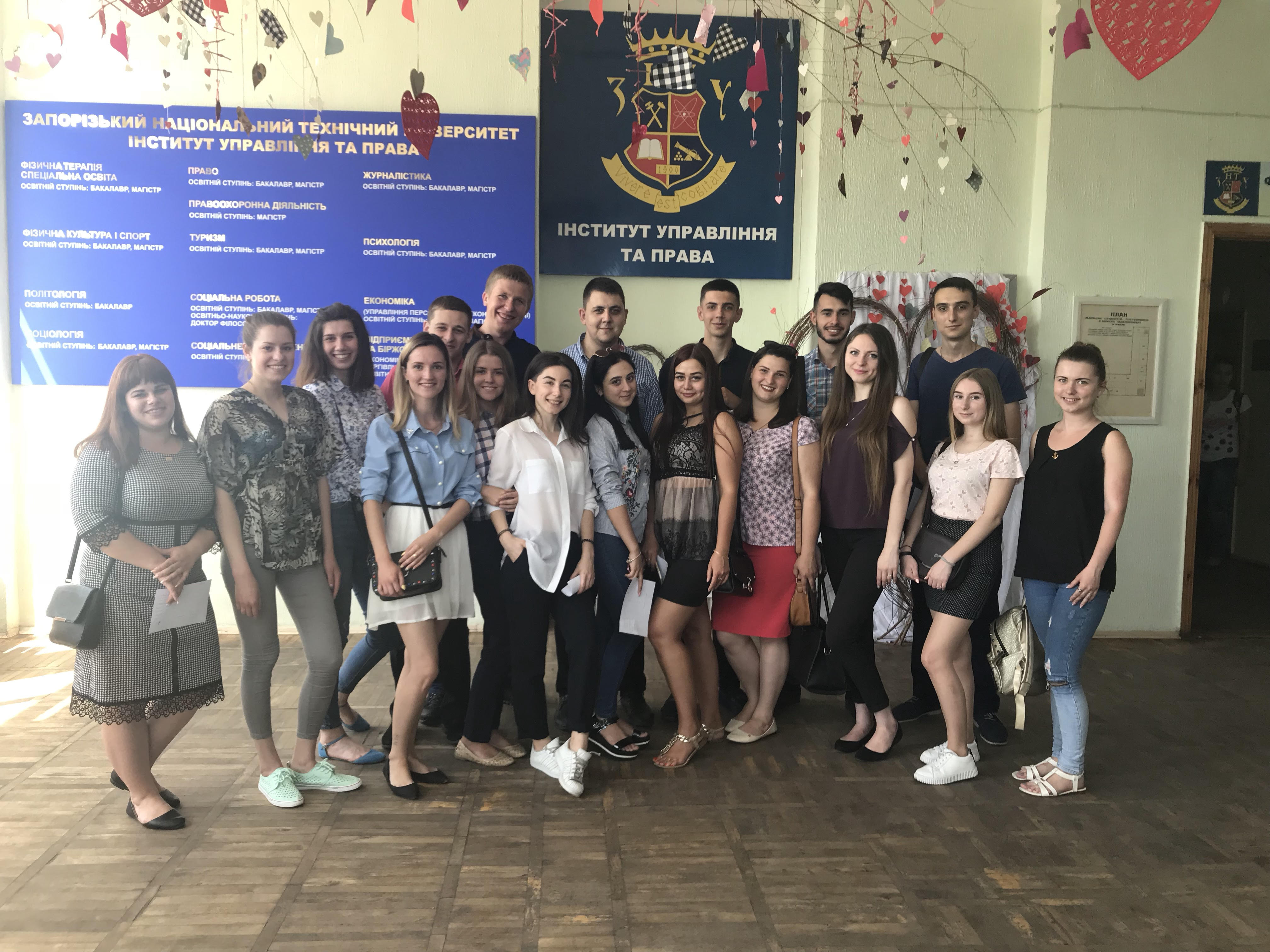 У продовж травня місяця студенти юридичного факультету денної та заочної форм навчання складали державні іспити на отримання диплому бакалавра. Незважаючи на хвилювання, вони показали високий рівень знань та вкотре переконались у тому, що правильно обрали свою майбутню професію. Складання державного іспиту стало завершальним етапом навчального процесу студентів при здобутті ними освітнього ступеню «бакалавр» за спеціальністю «Право». Але на цьому спілкування студентів та професорсько-викладацького складу ЗНТУ не завершується, бо майже всі випускники планують продовжити навчання на юридичному факультеті Інституту управління та права ЗНТУ в магістратурі за спеціальностями «Право» чи «Правоохоронна діяльність».