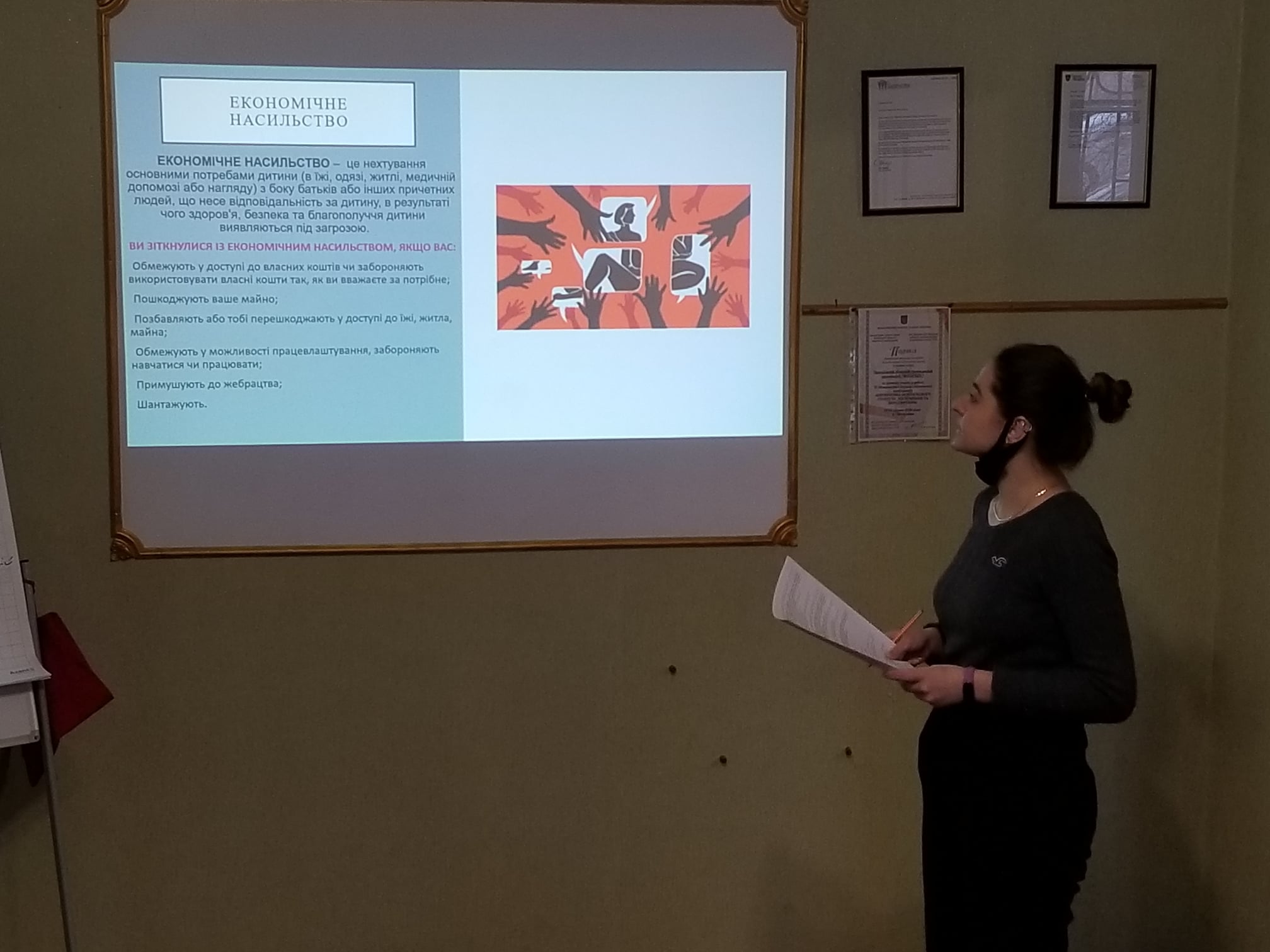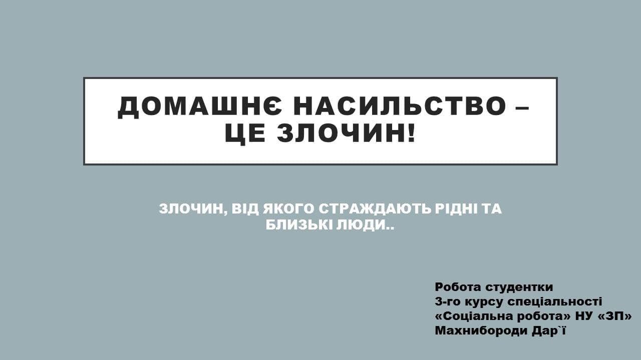 Дар'я Махниборода - студентка 3-го курсу НУ "Запорізька політехніка" підготувала та представила презентацію щодо запобігання домашньому насильству.
