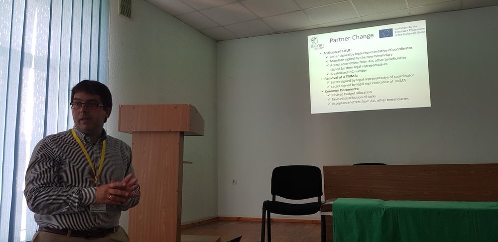 На зустрічі виконавців проекту BIOART з доповідями щодо поточних результатів та подальших задач проекту виступили представники всіх партнерських університетів України, а також координатор проекту Девід Луенго. В ході дискусій було обговорено підсумки за півтора роки виконання проекту, проблеми закупівлі обладнання для BIONIC лабораторії, а також підготовку проміжного звіту для Європейської комісії.