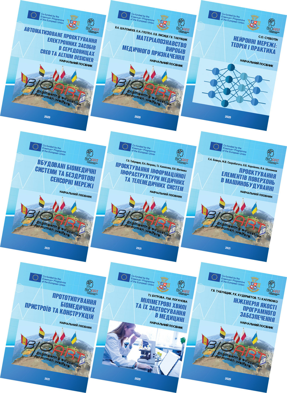 - Видання та перевидання за рахунок гранту від ЄС навчальних посібників українською мовою у кількості 9 видань: «Прототипування біомедичних пристроїв та конструкцій»; «Автоматизоване проєктування електронних засобів в середовищах Creo та ALTIUM DESIGNER»; «Вбудовані біомедичні системи та бездротові сенсорні мережі»; «Матеріалознавство виробів медичного призначення»; «Нейронні мережі: теорія та практика»; «Проєктування інформаційної інфраструктури медичних та телемедичних систем»; «Міліметрові хвилі та їх застосування в медицині»; «Проєктування елементів поверхонь в машинобудуванні», «Інженерія якості програмного забезпечення».