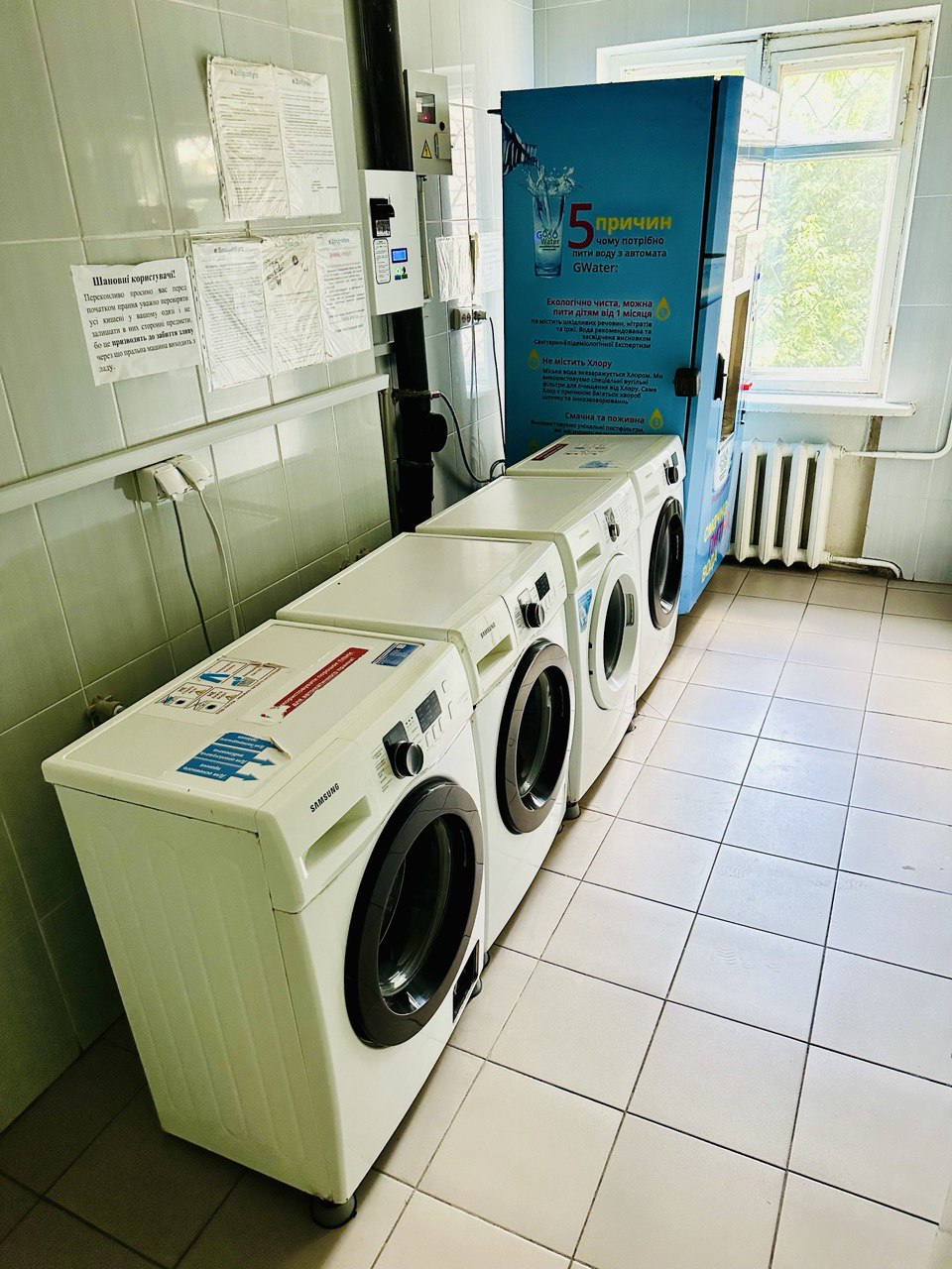 Для покращення умов побуту студенти мають можливість, не виходячи з гуртожитку скористатися пральнею, розташованої на другому поверсі, яка працює 24 години на добу без перерви та вихідних.