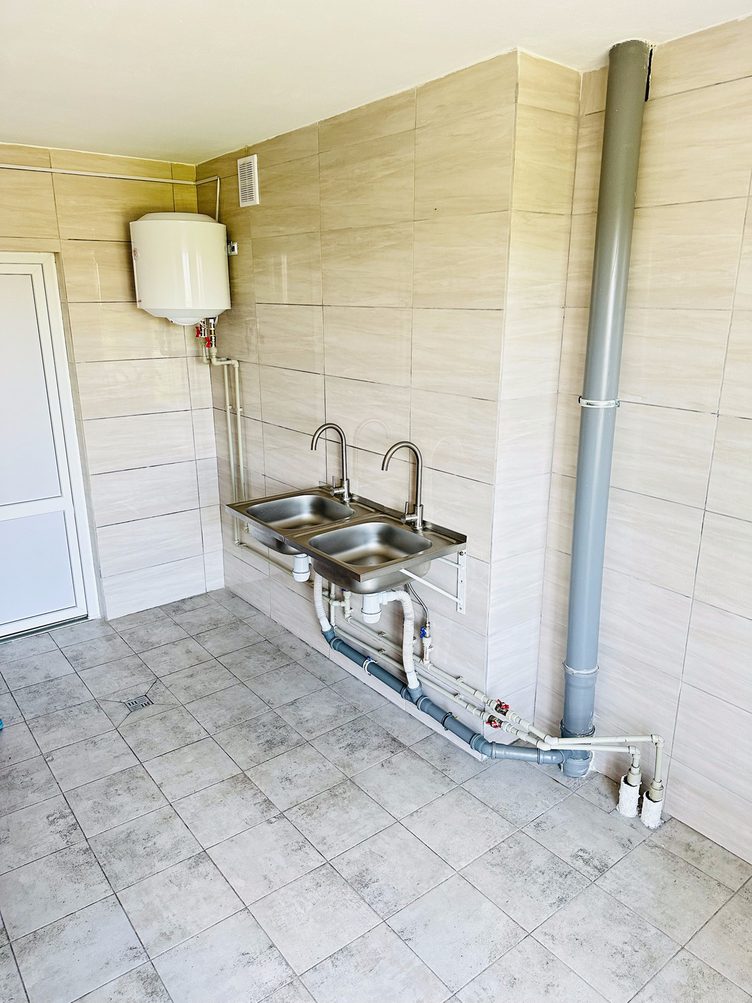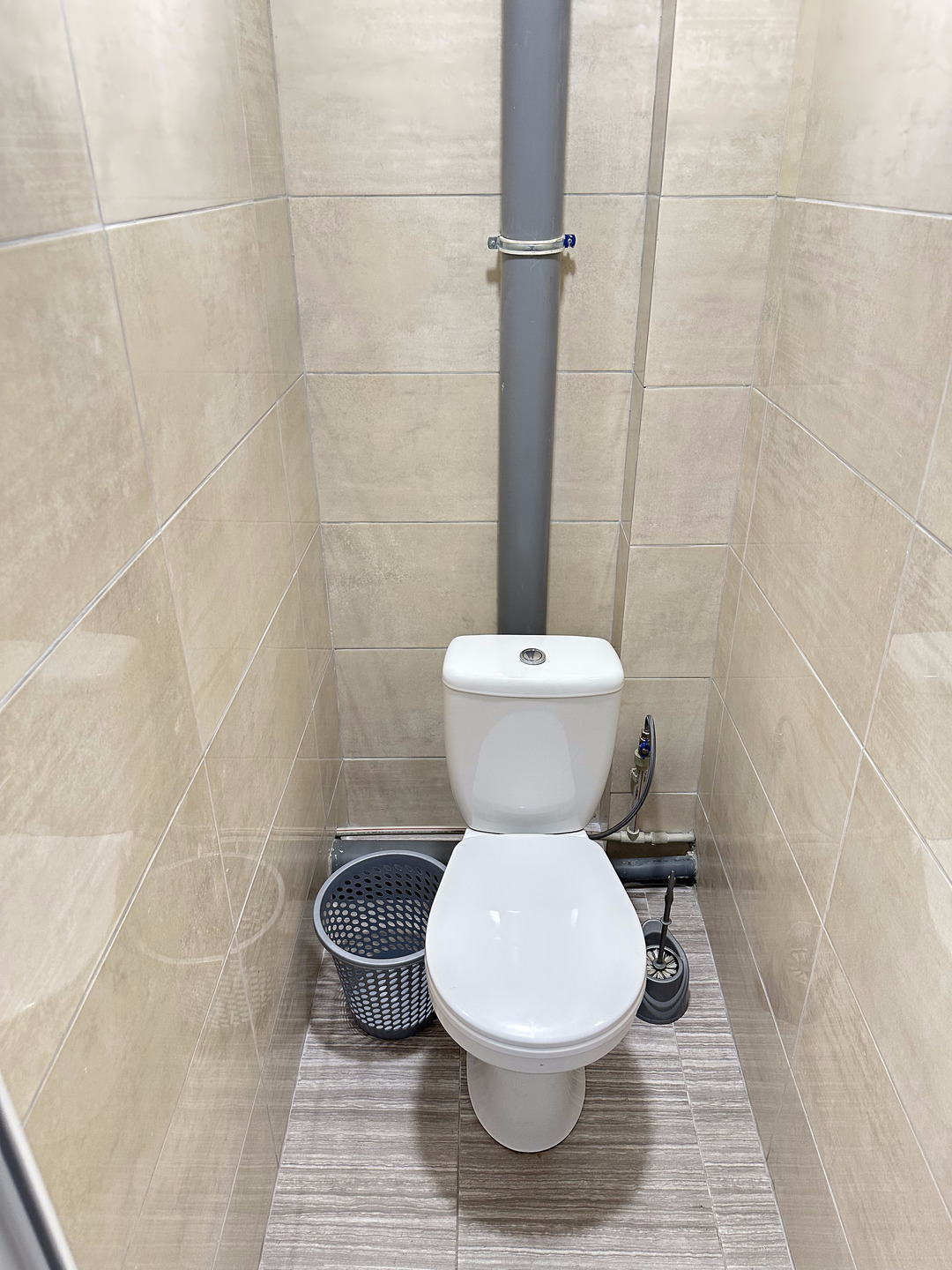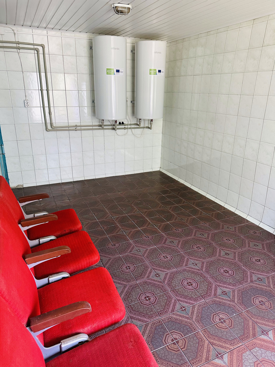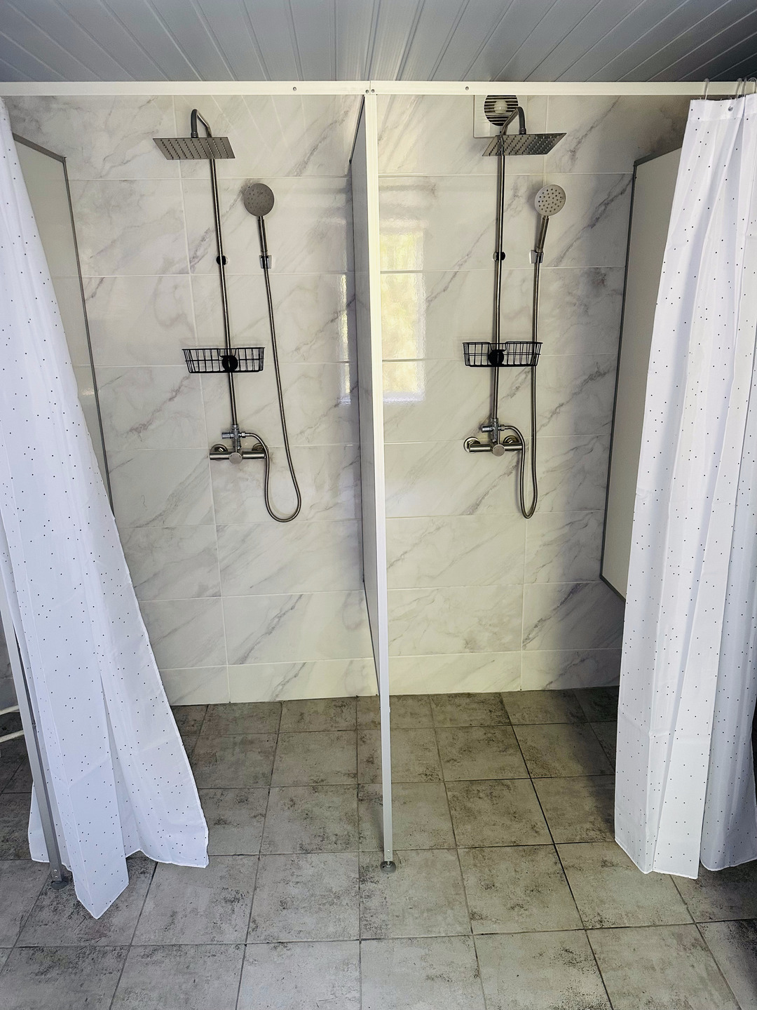 На першому поверсі розташована одна душова чоловіча, в якій функціонує вісім кабінок, та друга душова – жіноча на дванадцять кабінок.