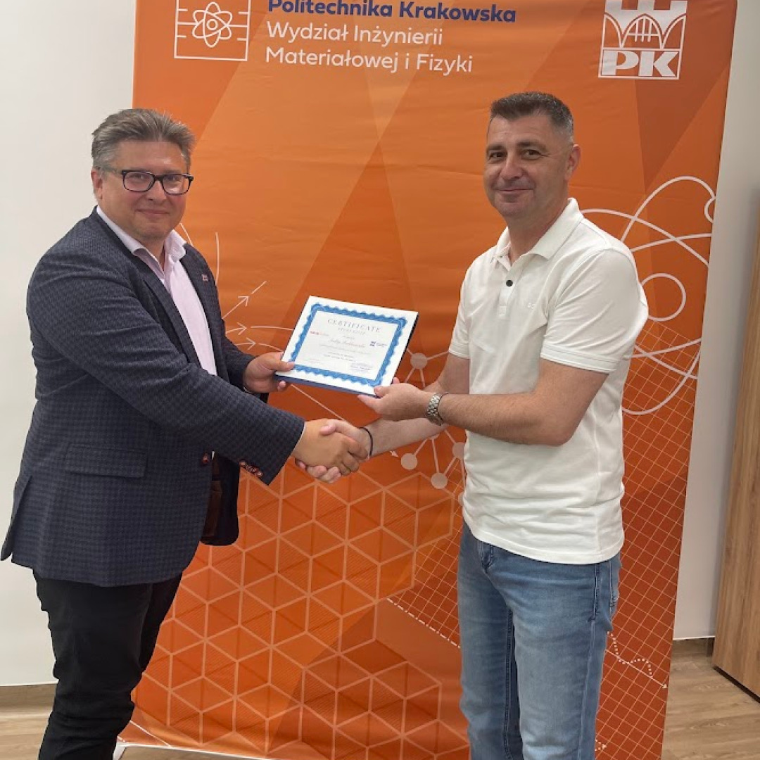 Дякуємо професору Kinga Korniejenko, заступнику декана професору Dariusz Mierzwinski та всім колегам факультету матеріалознавства та фізики Краківської політехніки за теплий прийом та надані можливості.