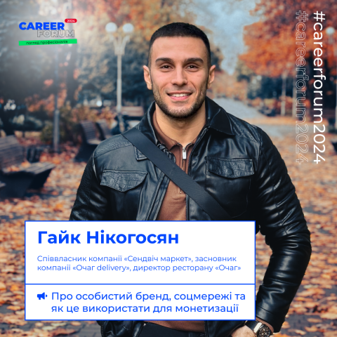 Про особистий бренд, соцмережі та як це використати для монетизації розповість співвласник Сендвіч маркет, директор ресторану «Очаг» і засновник Очаг delivery Гайк Нікогосян.