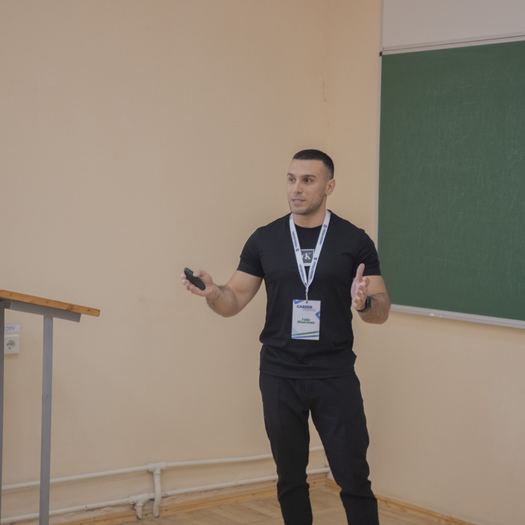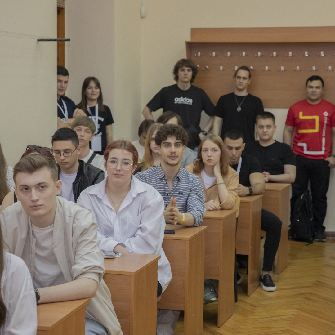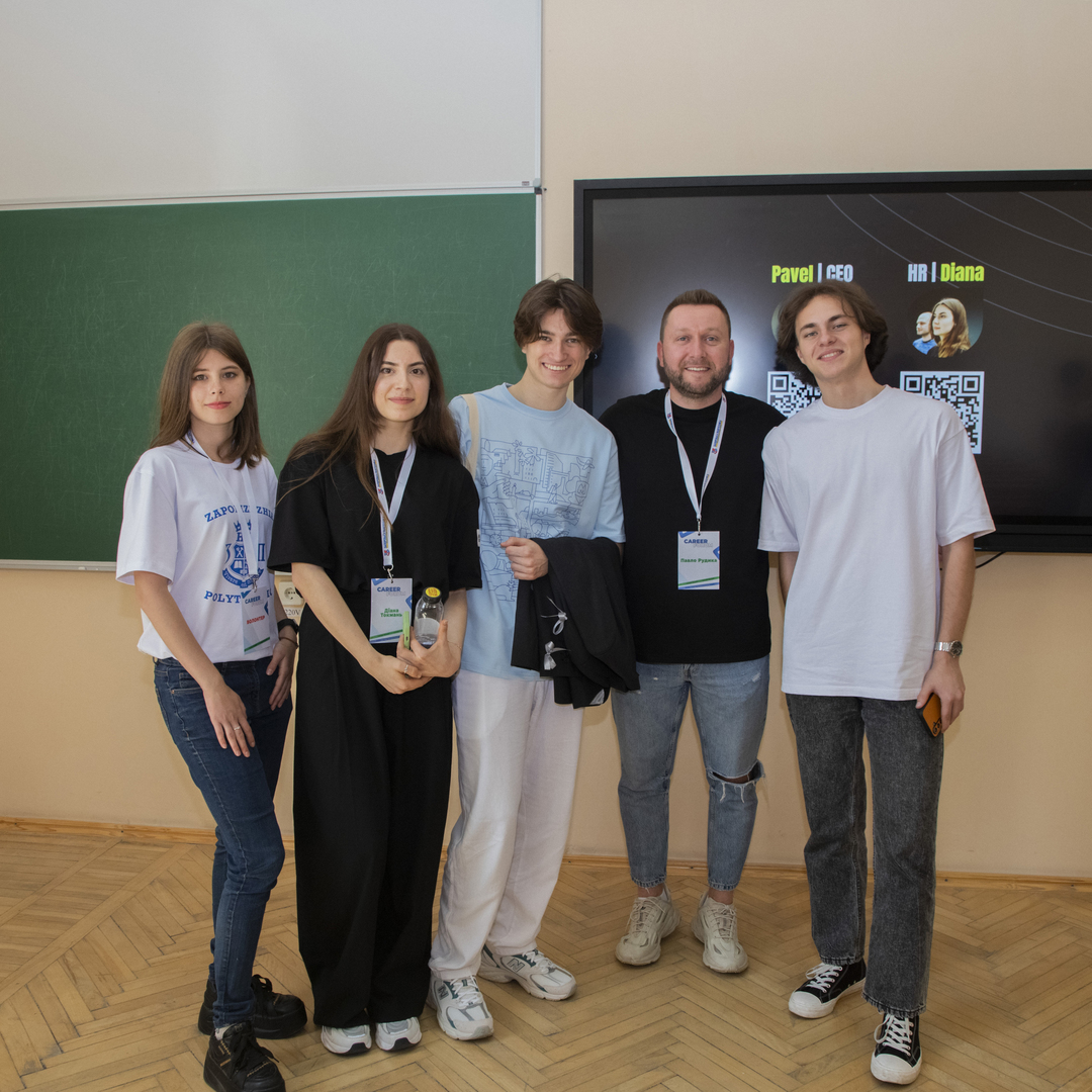 CEO UINNO Павло Рудика та HR компанії Діана Токмань дали корисні поради молоді про кар'єру в IT-сфері, а також подарували молоді мерч своєї компанії.