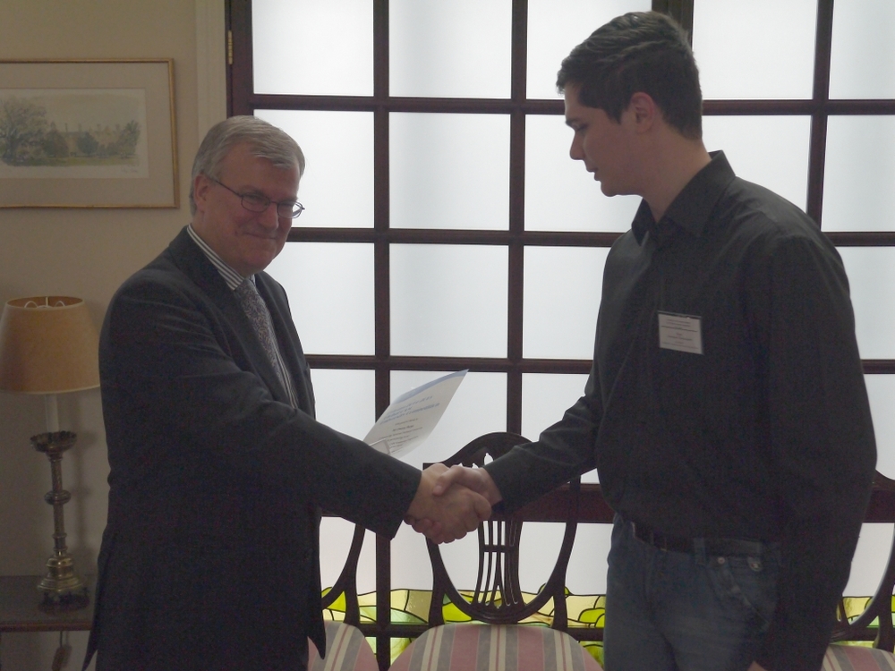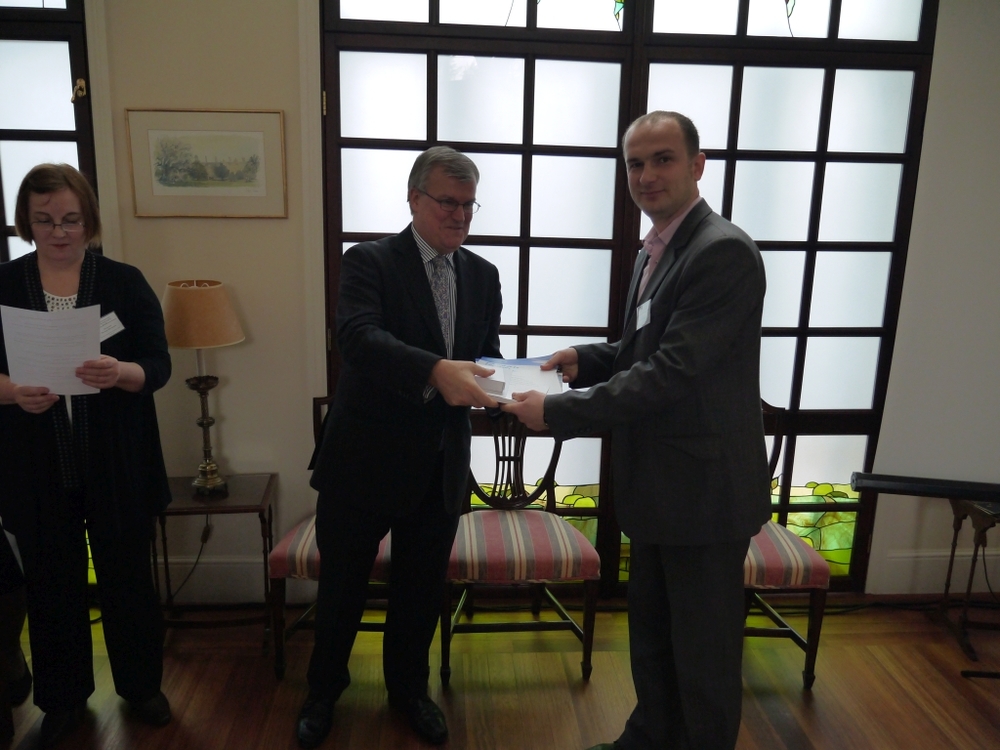 На офіційній частині посол привітав всіх учасників церемонії, подякував організаторам проекту за тісну та плідну співпрацю з українськими вузами, а також вручив дипломи та цінні призи переможцям. Від ЗНТУ диплом отримав старший викладач кафедри «Металорізальні верстати та інструмент» Клименко Віталій, як керівник конкурсної роботи, яка отримала четверте місце серед конкурсних робіт.