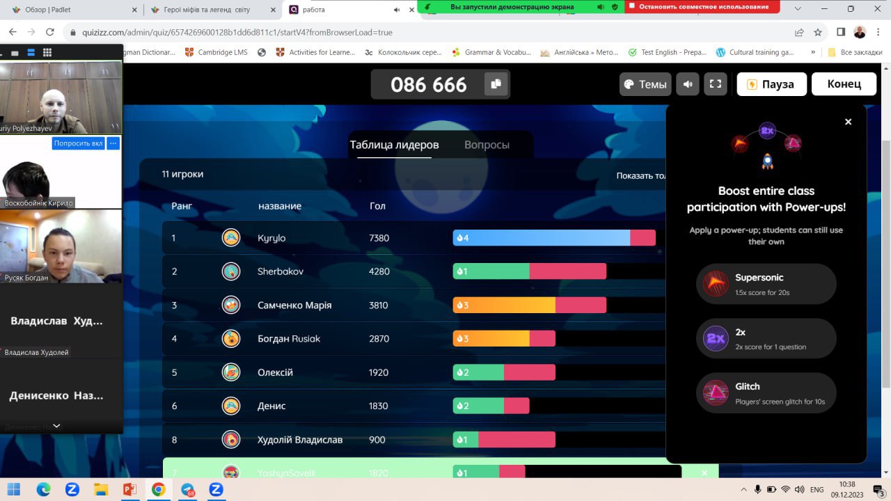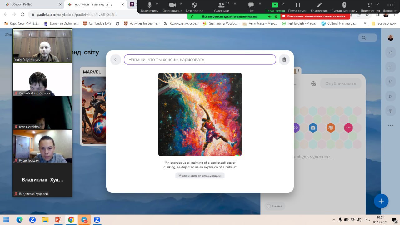 Учні дізнались багато нової інформації про героїв давніх міфів і легенд та проаналізували міфологічне походження персонажів всесвіту «Marvel». Обговорили легендарні українські історичні постаті. Поговорили про міські легенди сьогодення. Пройшли цікавий інтерактивний тест на закріплення вивченого матеріалу. За допомогою штучного інтелекту дітям вдалося створити власного персонажа сучасних українських міфів — Captain Ukraine, який захистить від російської навали.