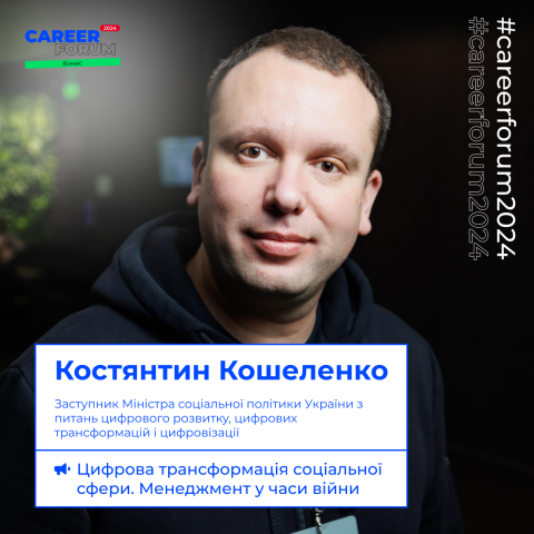 «Цифрова трансформація соціальної сфери. Менеджмент у часи війни» — тема виступу одного зі спікерів «Career Forum. Бізнес 2024» Костянтина Кошеленка!