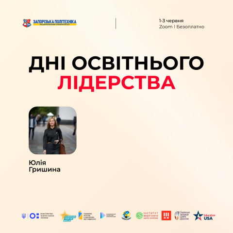 Голова підкомітету з питань вищої освіти Комітету Верховної Ради України з питань освіти, науки та інновацій Юлія ГРИШИНА прийме участь у Всеукраїнському форумі «Дні освітнього лідерства», що відбудеться 1-3 червня 2023 р. на базі Національного університету «Запорізька політехніка».