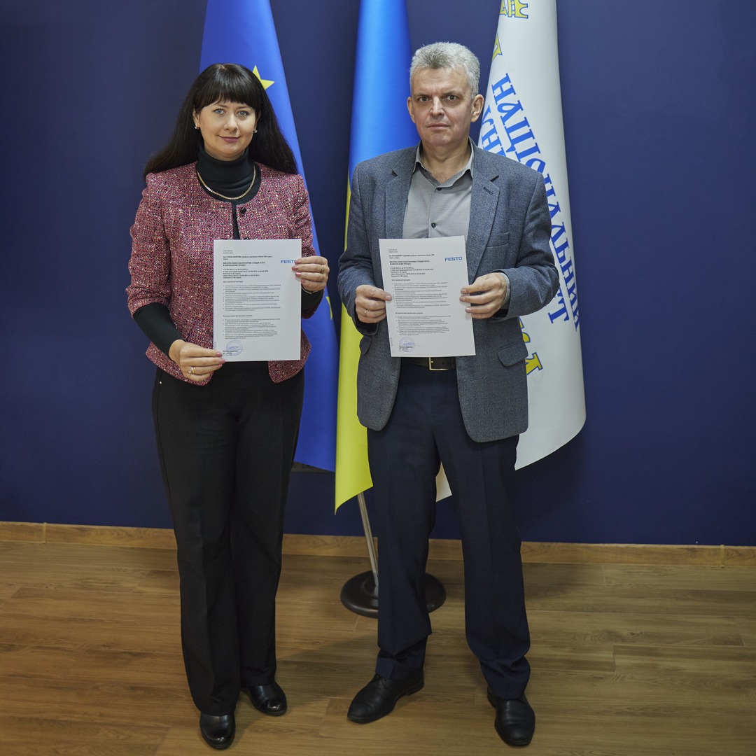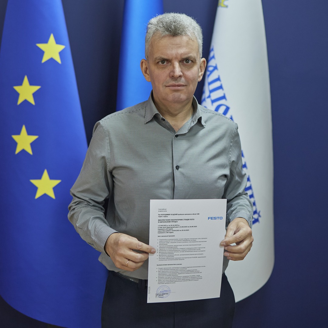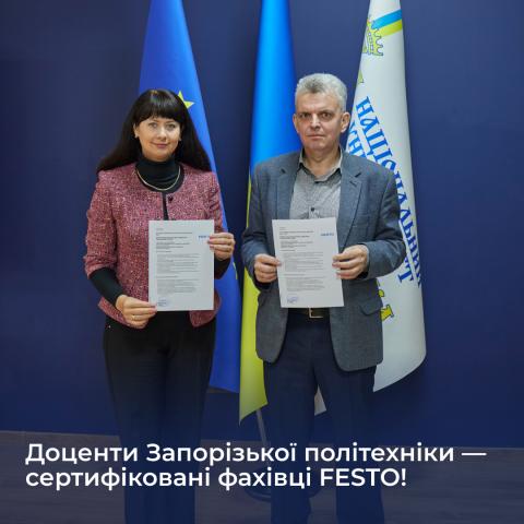 Олена Назарова та Володимир Осадчий отримали сертифікати від ДП «ФЕСТО» і набули статусу сертифікованих фахівців, які можуть використовувати навчальне обладнання та програмне забезпечення компанії FESTO в підготовці здобувачів освіти.