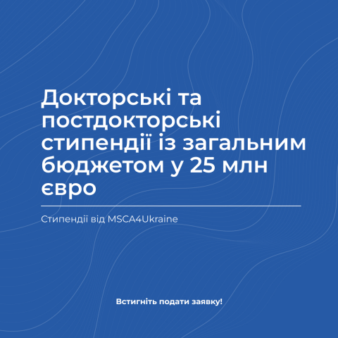 Розмір стипендії: ставки стипендій відповідатимуть Marie Skłodowska-Curie Actions (MSCA) Doctoral Networks and MSCA Postdoctoral Fellowships.