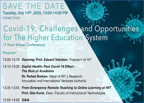 Співробітники кафедри програмних засобів НУ «Запорізька політехніка» зав. каф. С.О. Субботін, проф. Г.В. Табунщик та доцент А.В. Пархоменко 14.07.2020 р. взяли участь у міжнародному вебінарі «COVID-19: challenges and opportunities for the higher education system», організованому Холонським технологічним інститутом (м. Холон, Ізраїль). Участь у цьому семінарі продовжує співпрацю, встановлено завдяки проєкту «BIOART» програми Еразмус+.