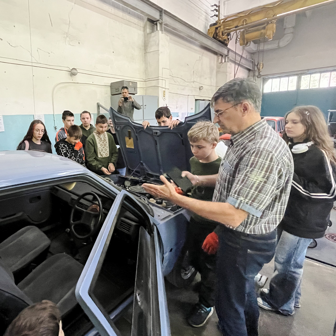 На занятті «Дослідження світу автомобільних технологій» учні займались на чотирьох локаціях. На першій розглядали та вчилися малювати контури легкових і вантажних автомобілів, автобуса, місця розміщення двигуна, коробки передач. На другій локації із використанням макета двигуна Стирлінга вивчали принцип формування штовхальних рухів у двигунах, можливість їх підтримки та передачі на вал, що обертається. На третій локації школярі знайомились із легковими автомобілями «Таврія» з лівим та правим розташуванням рульового колеса, з макетами трансмісії та ходової частини автомобіля. На четвертій локації вони вивчили побудову окремих деталей сучасного двигуна, виконали практичне завдання щодо їх з'єднання за схожістю форм, розмірів, взаємного положення та навчились формувати цілісні об'єкти.