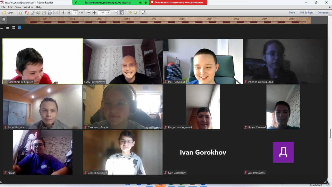 На занятті «Українська міфологія: боги, герої та потойбічні істоти» доцент кафедри іноземної філології та перекладу Юрій Полєжаєв розповів про вірування українців часів сивої давнини та поспілкувався про потойбічних істот, у яких деякі люди вірять сьогодні. Діти дізнались про унікальність українського пантеону та порівняли його зі скандинавським та грецьким. Школярі змогли знайти антропоморфні та зооморфні риси потойбічних істот! У кінці заняття діти зробили висновок, що українська міфологія одна із найбагатших у світі та навіть може стати основою для сценаріїв голлівудських фільмів.