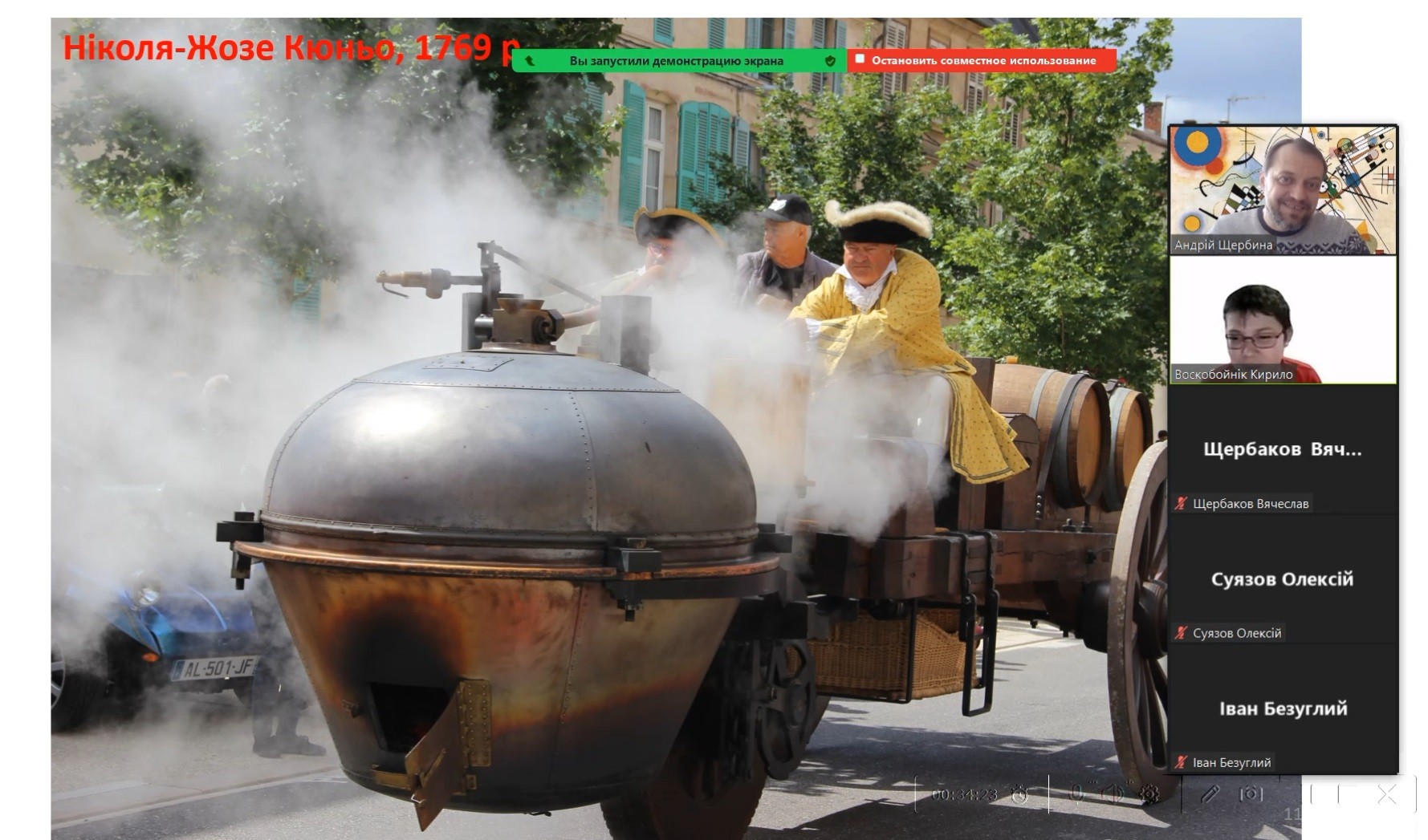 Під керівництвом доцента кафедри автомобілів Андрія Щербини учні розглянули тему «Перші автомобілі людства», дізналися, що люди з давніх часів не тільки мріяли по казкові транспортні засоби на кшталт хатинки на курячих лапках, печі, яка сама їздить або килима, що сам літає, але й створювали перші прообрази автомобілів, які мали працювати під дією як природних явищ, так і від фізико-механічних та хімічних процесів. Дітей вразили автомобілі, які працювали від сили вітру, стиснутої пружини, пари, електричної енергії та бензину.