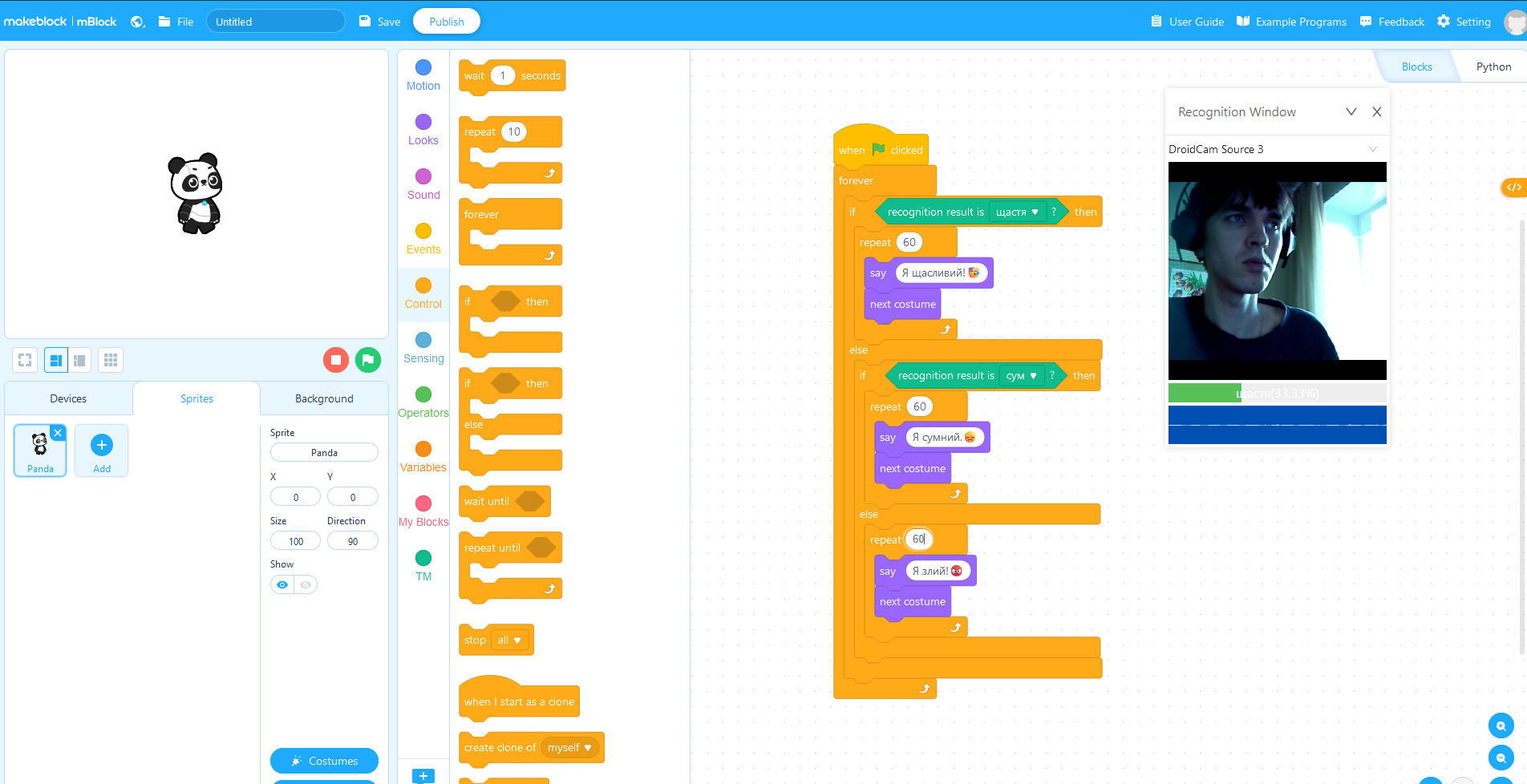Доцент кафедри системного аналізу та обчислювальної математики Дмитро Широкорад на занятті «Основи нейронних мереж» розповів учням про основні поняття машинного навчання та базові принципи роботи нейронних мереж. Діти під керівництвом Дмитра натренували нейронну мережу та розробили на її основі програму, яка моделює здатність хамелеона змінювати своє забарвлення відповідно до кольору навколишнього середовища. І навіть створили модель, яка розрізняє людські емоції.