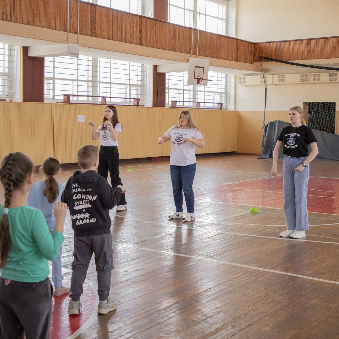 Програма заходу була насиченою різноманітними розвагами та конкурсами. Діти разом зі студентами вчили танцювальні рухи, брали участь у спортивних іграх та цікавих інтерактивах. Наші маленькі гості отримали багато позитивних емоцій та із задоволенням провели цей день.