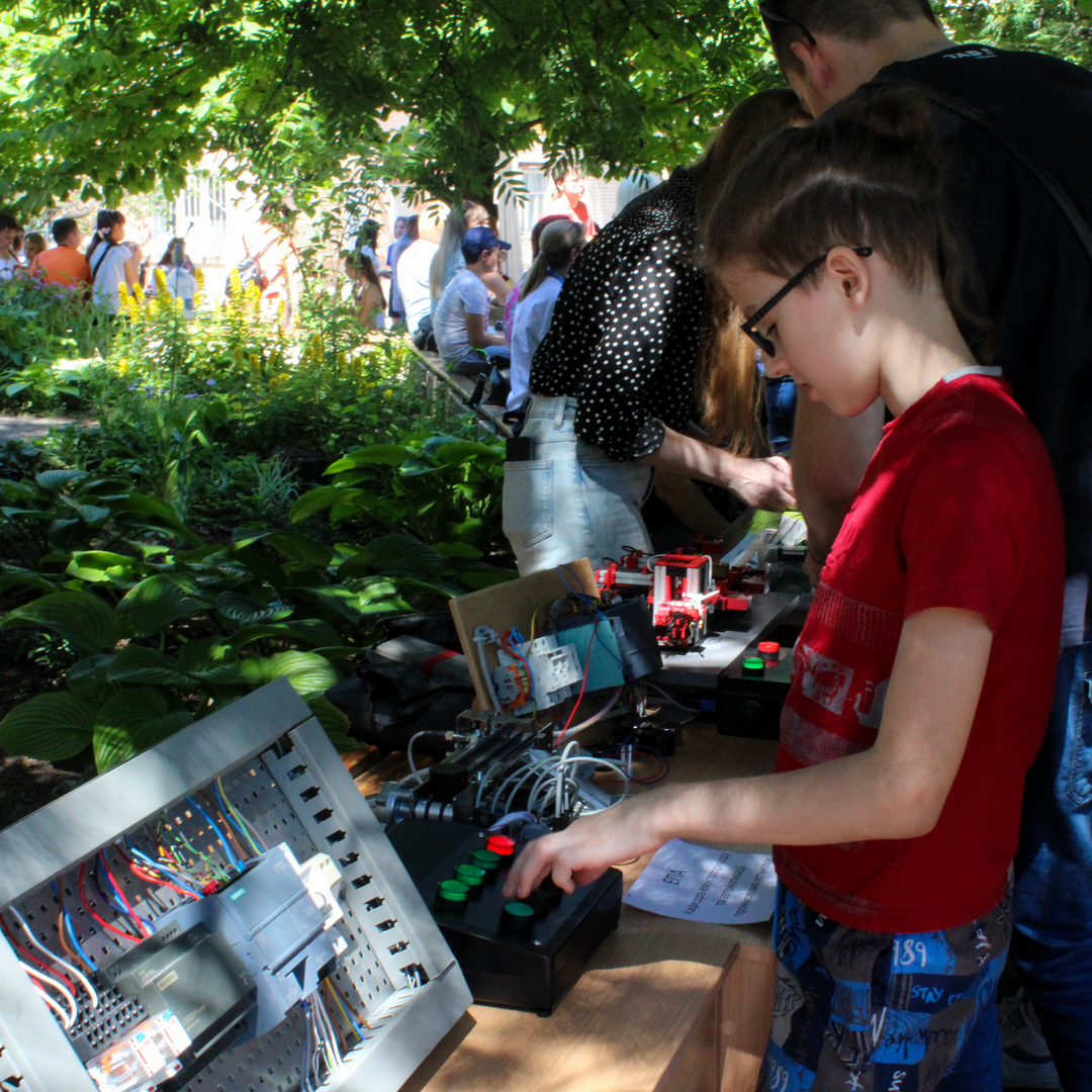 На локаціях кафедри електроприводу та автоматизації промислових установок «Робо-кари Micro:bit» та «Мехатроніка з Fischertechnik» діти знайомились з можливостями автоматизації, застосуванням інформаційних технологій та програмування.