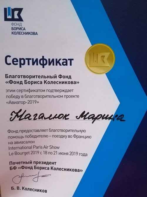 12 квітня, в День авіації і космонавтики, Фонд Бориса Колеснікова підвів підсумки всеукраїнського студентського конкурсу «Авіатор 2019» і оголосив імена ста його переможців. Вони були нагороджені сертифікатами на поїздку на Міжнародний авіакосмічний салон Ле Бурже до Франції.