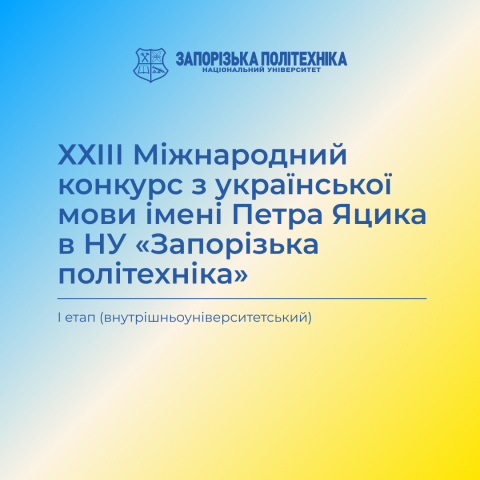 2 грудня 2022 року в дистанційному форматі відбувся 1 етап (внутрішньоуніверситетський) ХХІІІ Міжнародного конкурсу з української мови імені Петра Яцика, у якому взяли участь майже 40 студентів «Запорізької політехніки».
