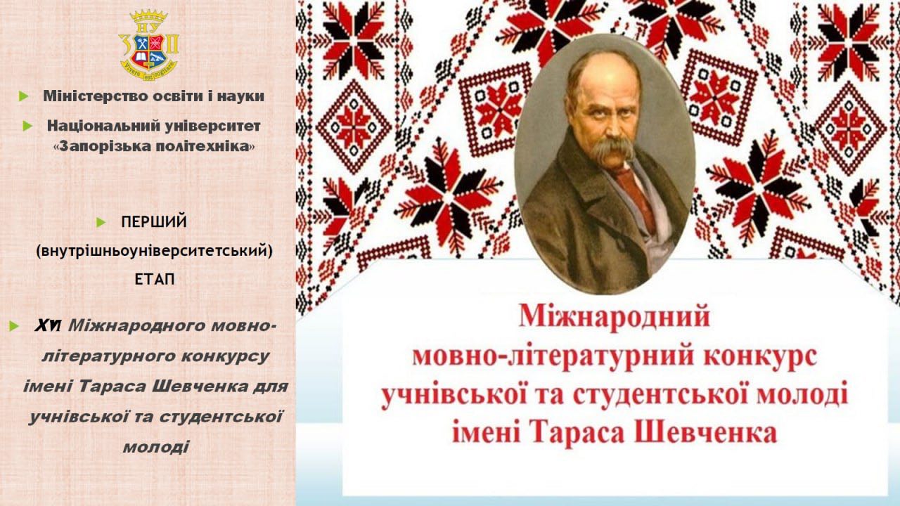 30 жовтня в НУ «Запорізька політехніка» відбувся І (університетський) етап ХVІ Міжнародного мовно-літературного конкурсу учнівської та студентської молоді імені Тараса Шевченка, присвячений 125–й річниці університету.