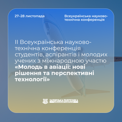 Запрошуємо взяти участь у II Всеукраїнській науково-технічній конференції студентів, аспірантів і молодих учених з міжнародною участю «Молодь в авіації: нові рішення та перспективні технології»!