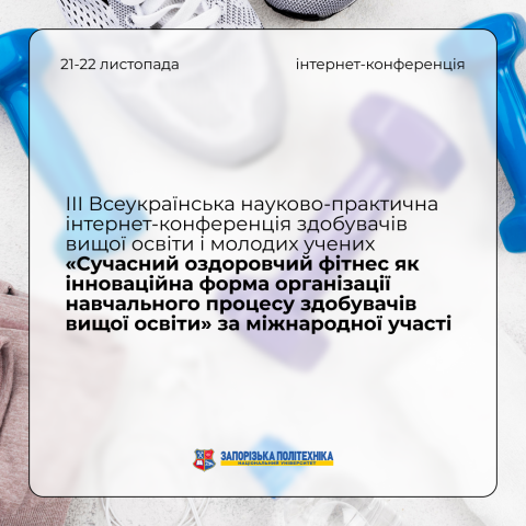 21–22 листопада в НУ «Запорізька політехніка» відбулась III Всеукраїнська науково-практична інтернет-конференція з міжнародною участю, присвячена 124 річниці Запорізької політехніки «Сучасний оздоровчий фітнес як інноваційна форма організації навчального процесу здобувачів вищої освіти».