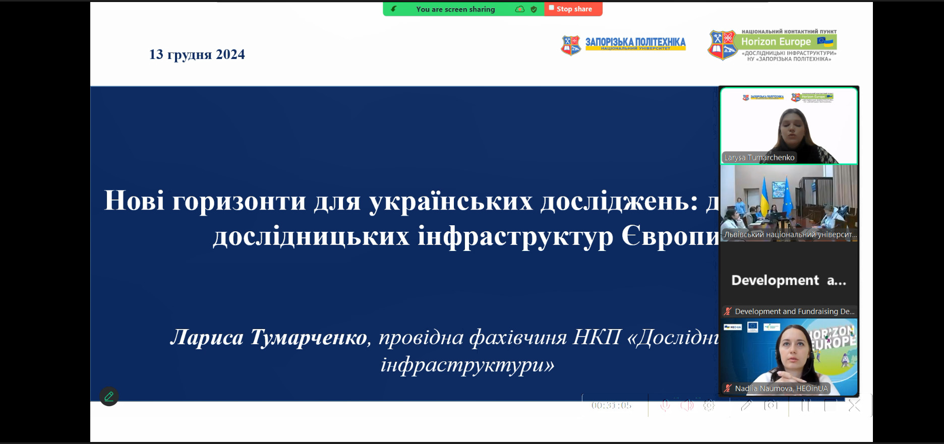 12–13 грудня Національний контактний пункт програми «Горизонт Європа» за напрямом діяльності «Дослідницькі інфраструктури» НУ «Запорізька політехніка» спільно з Національним контактним пунктом за напрямом «Розширення участі та зміцнення Європейського дослідницького простору» КПІ ім. Ігоря Сікорського провели інформаційні заходи, присвячені участі в програмі «Горизонт Європа», у місті Львів. У заходах взяли участь фахівці «Офісу Горизонт Європа в Україні» НФДУ, які долучилися як спікери.