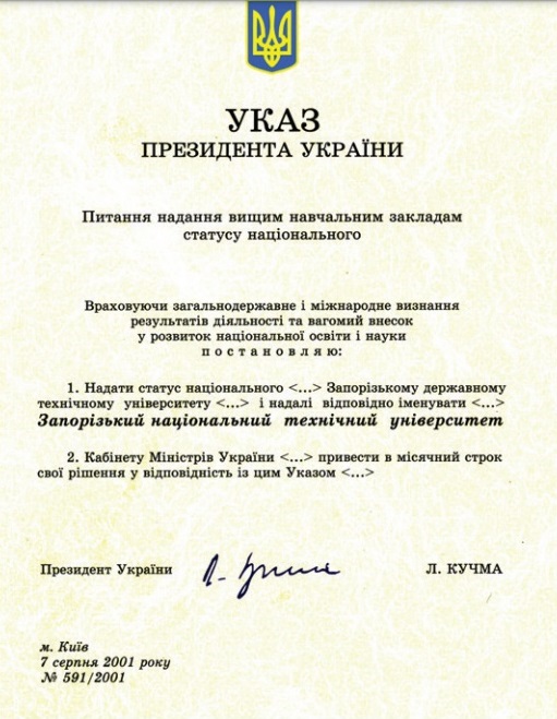 Від Запорізького державного технічного університетудо Запорізького національного технічного університету