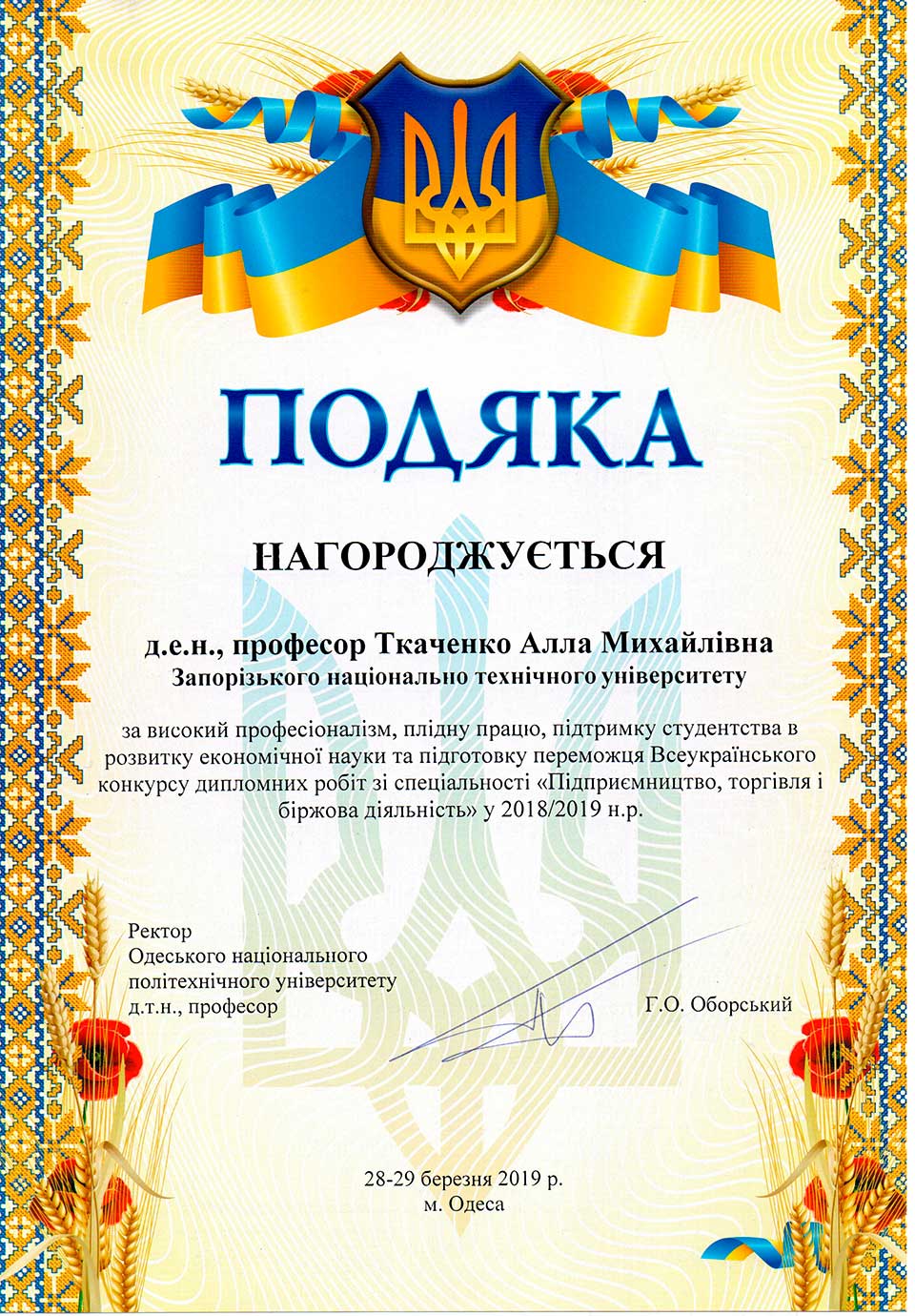 Завідувач кафедри: д.е.н., професор Ткаченко Алла Михайлівна