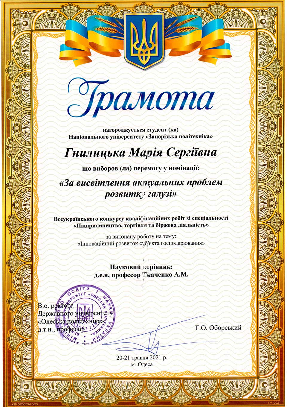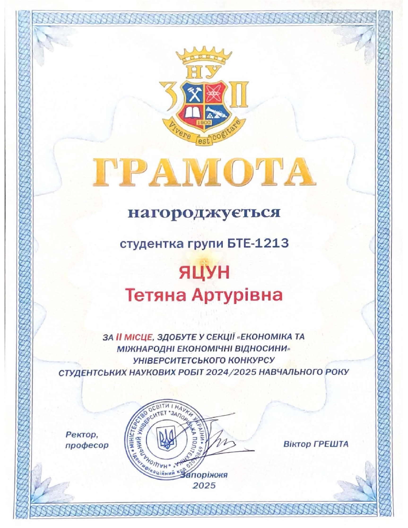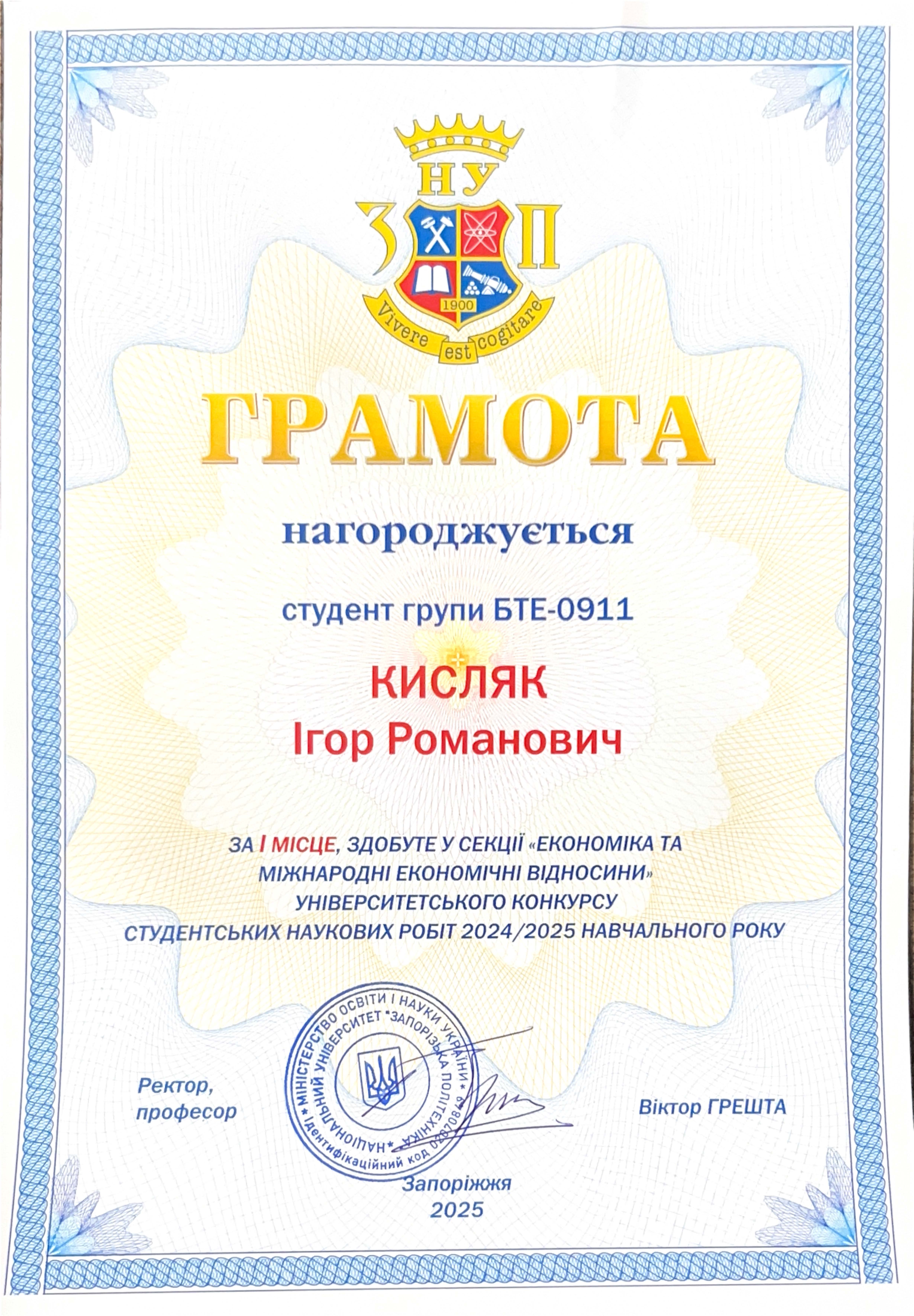 Національний університет «Запорізька політехніка»: освітня програма «Економіка підприємства»