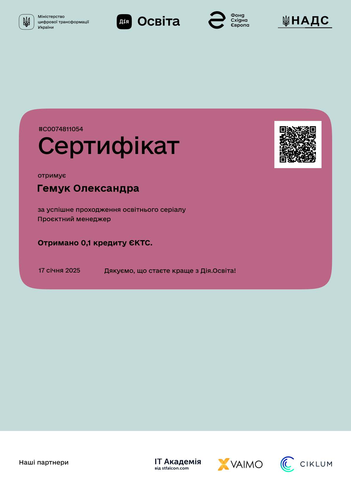 За результатами участі всі учасники отримали сертифікати про успішне завершення програми обсягом 180 годин