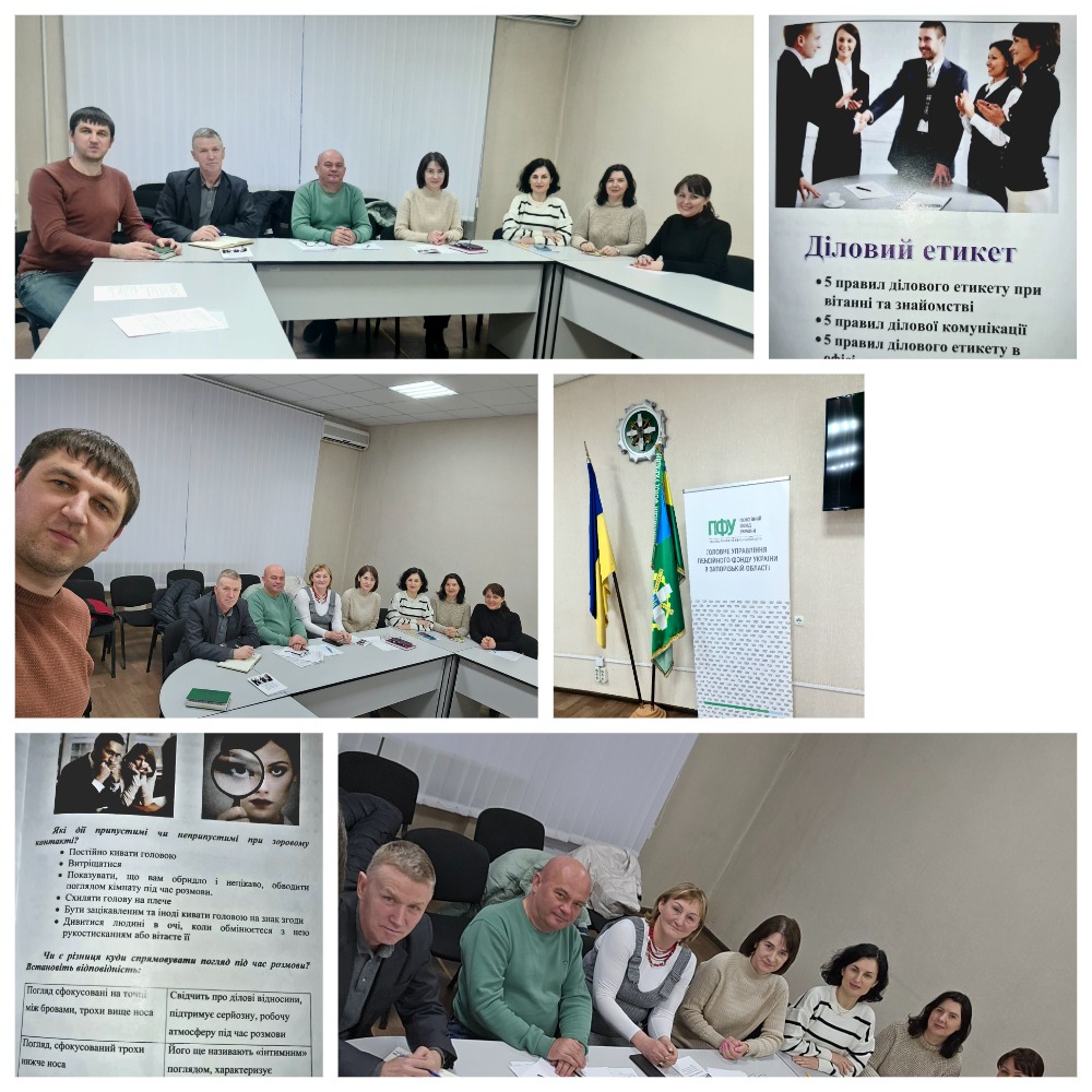 14 березня 2024 року в рамках співпраці з Головним управлінням пенсійного фонду України в Запорізькій області доценткою кафедри ПТБД Факультету будівництва, архітектури та дизайну Запорізької політехніки Іриною Черновою було проведено тренінг з ділового етикету.