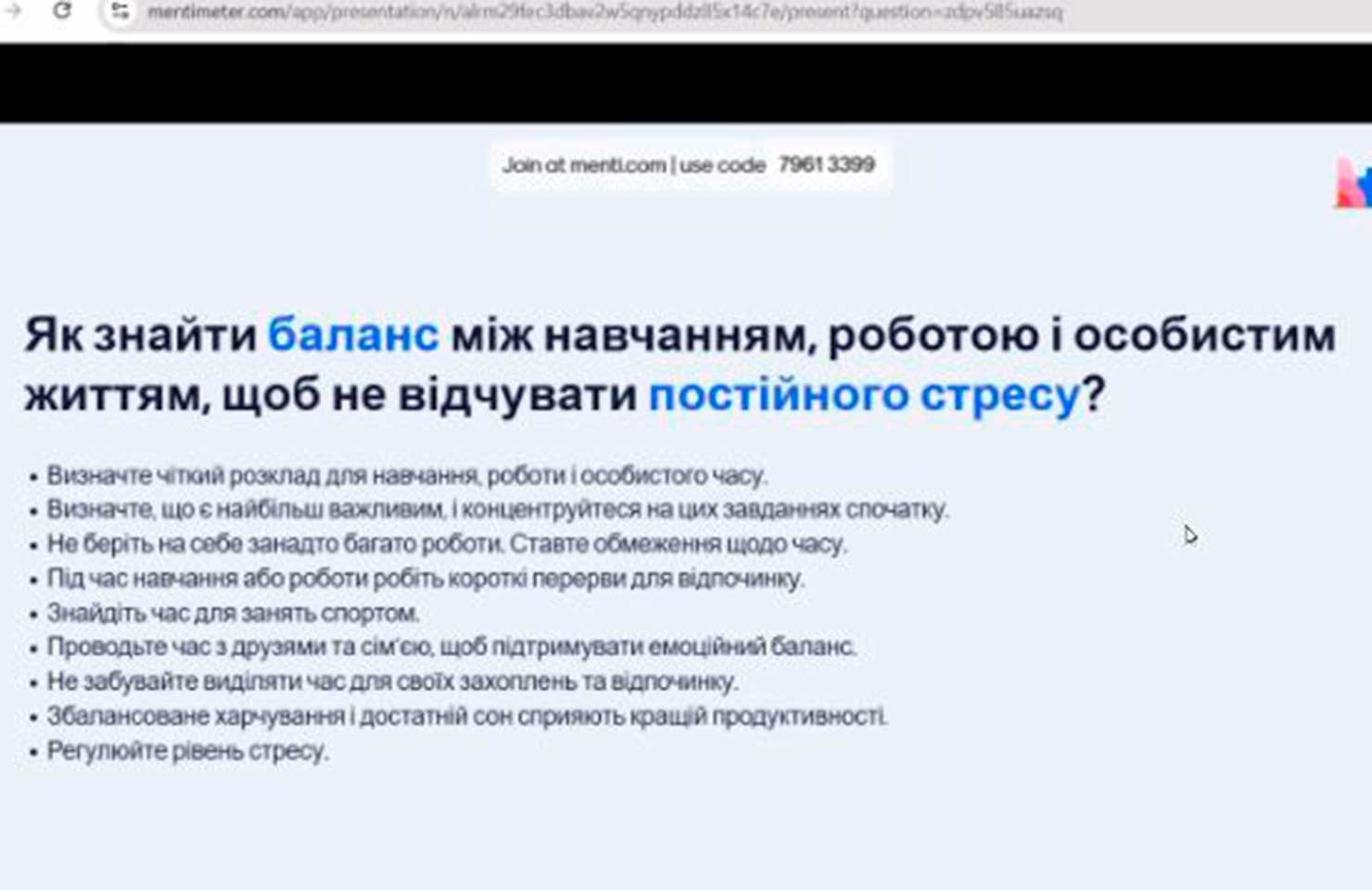 Як почати планувати свої фінанси, якщо я ще не маю стабільного доходу? Як вести облік своїх надходжень та витрат(як вести бюджет)? Які переваги ведення бюджету? Як розвинути навичка накопичення? Які можливості підробітку чи фрілансу можна поєднувати з навчанням? Як знайти баланс між навчанням, роботою та особистим життям, щоб не відчувати постійного стресу? Як перейти до створення пасивного доходу? Інструкція створення пасивного доходу та багато інших питань вдалося обговорити під час онлайн зустрічі. А ще, що особливо приємно, родзинкою спілкування став обмін досвідом з магістранткою кафедри Вітковською Наталією, фінансовою консультанткою зі страхування.