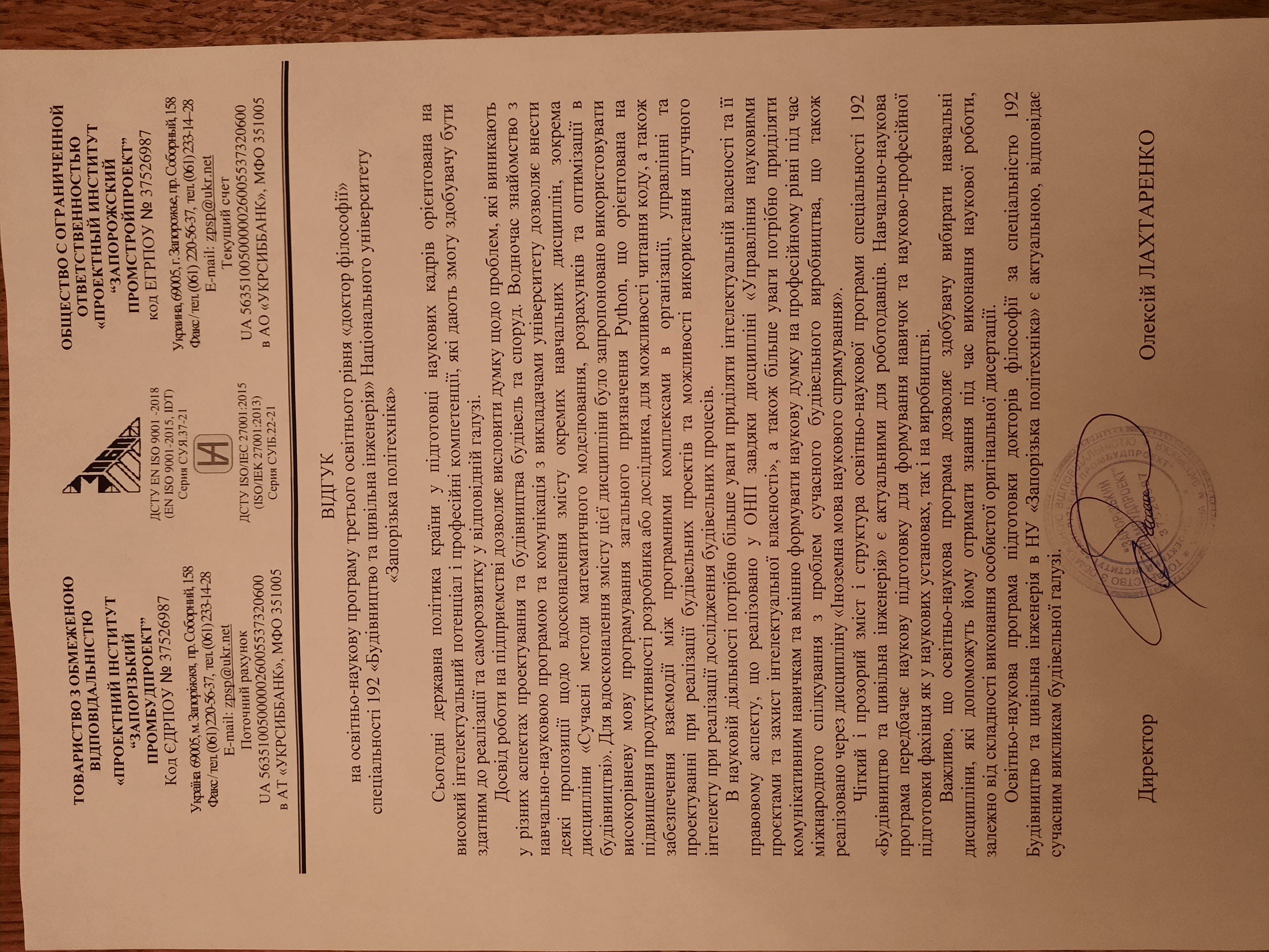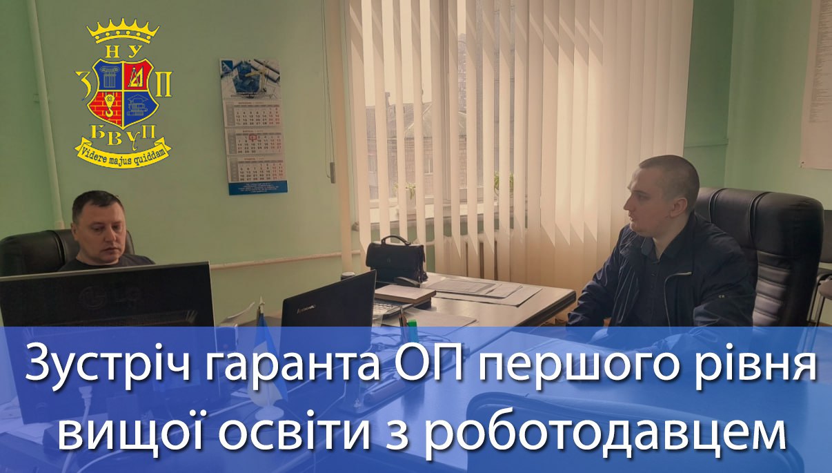 02 квітня 2025 року відбулася зустріч Куліка Михайла Валерійовича гаранта освітньо-професійної програми першого (бакалаврського) рівня з партнером кафедри з числа роботодавців - директором ТОВ «Проектний інститут «Запорізький ПРОМБУДПРОЕКТ» Олексієм Івановичем Лахтаренко.